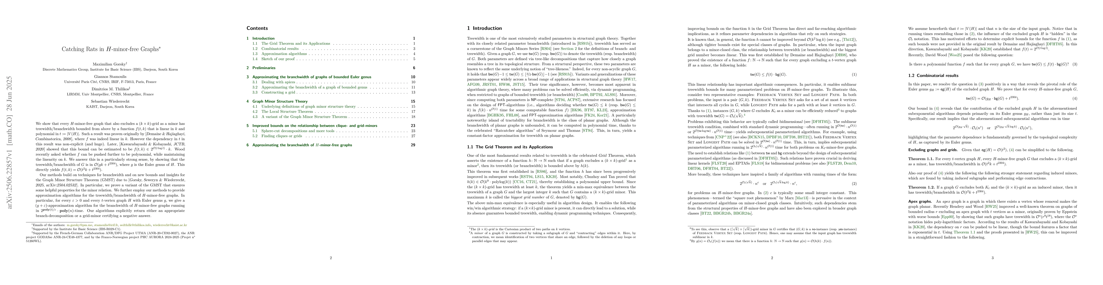 We show that every $H$-minor-free graph that also excludes a $(k \times k)$-grid as a minor has treewidth/branchwidth bounded from above by a function $f(t,k)$ that is linear in $k$ and polynomial in $t := |V(H)|$. Such a result was proven originally by [Demaine & Hajiaghayi, Combinatorica, 2008], where $f$ was indeed linear in $k$. However the dependency in $t$ in this result was non-explicit (and huge). Later, [Kawarabayashi & Kobayashi, JCTB, 2020] showed that this bound can be estimated to be $f(t,k)\in 2^{\mathcal{O}(t\log t)} \cdot k$. Wood recently asked whether $f$ can be pushed further to be polynomial, while maintaining the linearity on $k$. We answer this in a particularly strong sense, by showing that the treewidth/branchwidth of $G$ is in $\mathcal{O}(gk + t^{2304}),$ where $g$ is the Euler genus of $H$. This directly yields $f(t,k)= \mathcal{O}(t^2k + t^{2304})$. Our methods build on techniques for branchwidth and on new bounds and insights for the Graph Minor Structure Theorem (GMST) due to [Gorsky, Seweryn & Wiederrecht, 2025, arXiv:2504.02532]. In particular, we prove a variant of the GMST that ensures some helpful properties for the minor relation. We further employ our methods to provide approximation algorithms for the treewidth/branchwidth of $H$-minor-free graphs. In particular, for every $\varepsilon > 0$ and every $t$-vertex graph $H$ with Euler genus $g$, we give a $(g + \varepsilon)$-approximation algorithm for the branchwidth of $H$-minor-free graphs running in $2^{\mathsf{poly}(t) / \varepsilon} \cdot \mathsf{poly}(n)$-time. Our algorithms explicitly return either an appropriate branch-decomposition or a grid-minor certifying a negative answer.