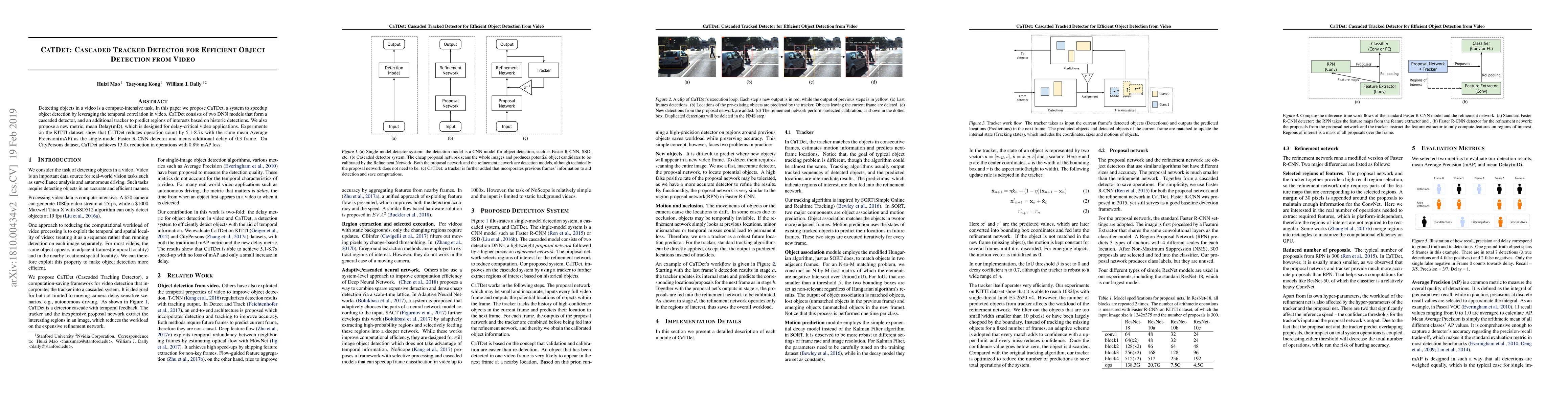 CaTDet is a cascaded tracked detector system designed to enhance object detection efficiency in videos by utilizing temporal correlations. It employs two DNN models in a cascaded structure and a tracker to predict regions of interest, reducing operation count significantly while maintaining detection accuracy.
