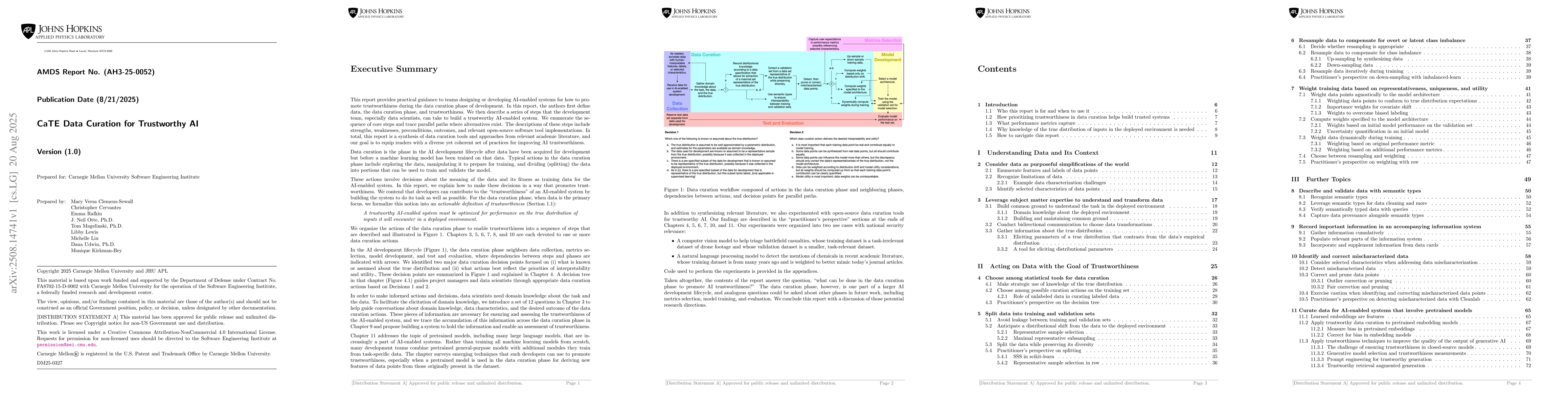 This report provides practical guidance to teams designing or developing AI-enabled systems for how to promote trustworthiness during the data curation phase of development. In this report, the authors first define data, the data curation phase, and trustworthiness. We then describe a series of steps that the development team, especially data scientists, can take to build a trustworthy AI-enabled system. We enumerate the sequence of core steps and trace parallel paths where alternatives exist. The descriptions of these steps include strengths, weaknesses, preconditions, outcomes, and relevant open-source software tool implementations. In total, this report is a synthesis of data curation tools and approaches from relevant academic literature, and our goal is to equip readers with a diverse yet coherent set of practices for improving AI trustworthiness.