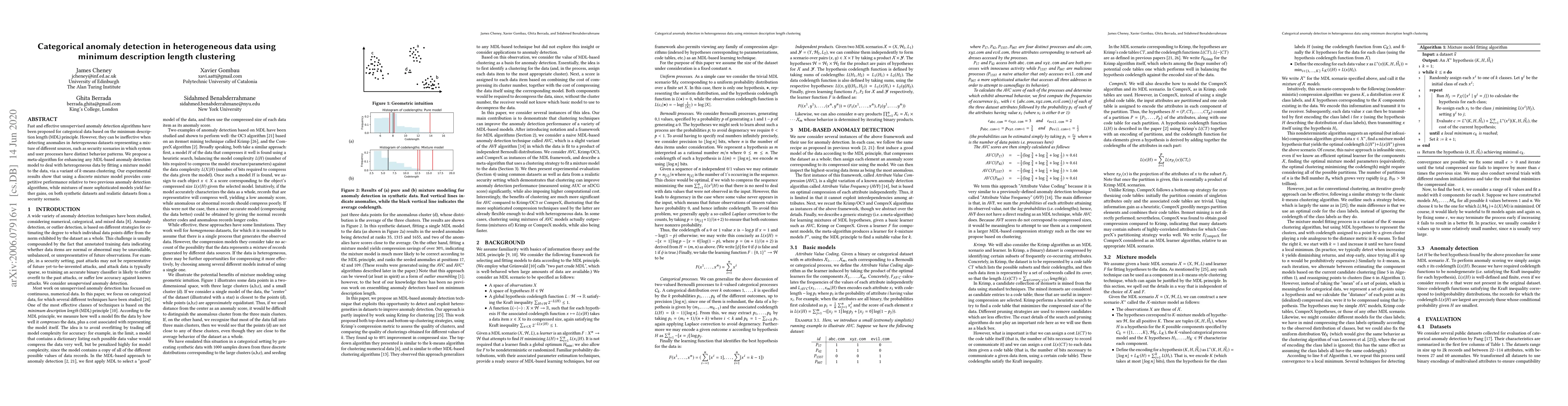 This paper proposes a meta-algorithm to enhance minimum description length (MDL)-based anomaly detection for heterogeneous data using a mixture model fitted through k-means clustering. Experimental results demonstrate competitive performance against previous algorithms on both synthetic and real security datasets.