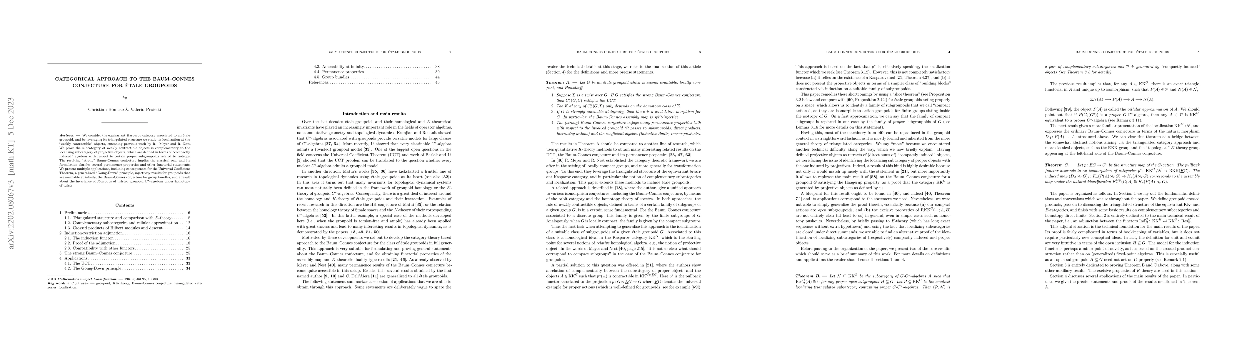 This research proves the "strong" Baum-Connes conjecture for étale groupoids by examining the equivariant Kasparov category and its localization, showing its implications for various functorial properties and applications, including the Universal Coefficient Theorem and injectivity results for amenable groupoids.
