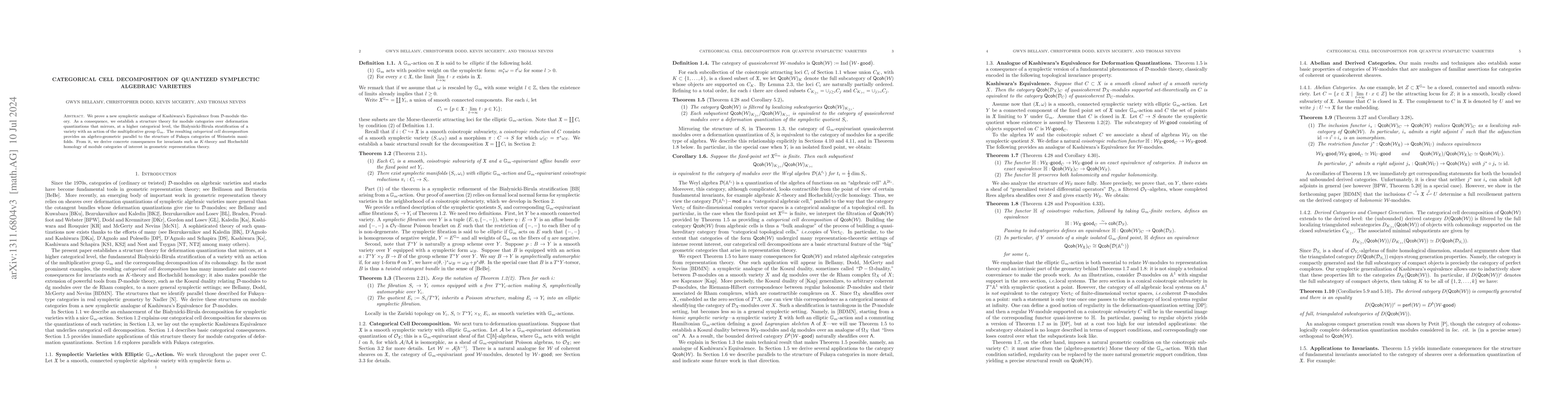 Researchers prove a symplectic analogue of Kashiwara's Equivalence, providing a categorical cell decomposition for module categories over deformation quantizations, mirroring the Bialynicki-Birula stratification of a variety with an action of the multiplicative group.