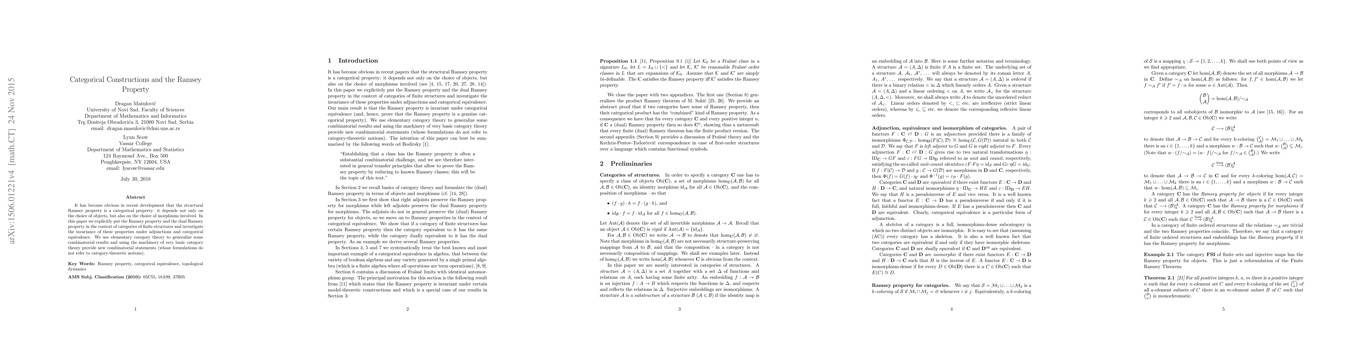 It has become obvious in the recent development that the structural Ramsey property is a categorical property: it depends not only on the choice of objects, but also on the choice of morphisms involved. In this paper we explicitely put the Ramsey property and the dual Ramsey property in the context of categories of finite structures and investigate the invariance of these properties under some standard categorical constructions. We use elementary category theory to generalize some combinatorial results and using the machinery of very basic category theory provide new combinatorial statements (whose formulations do not refer to category-theoretic notions).