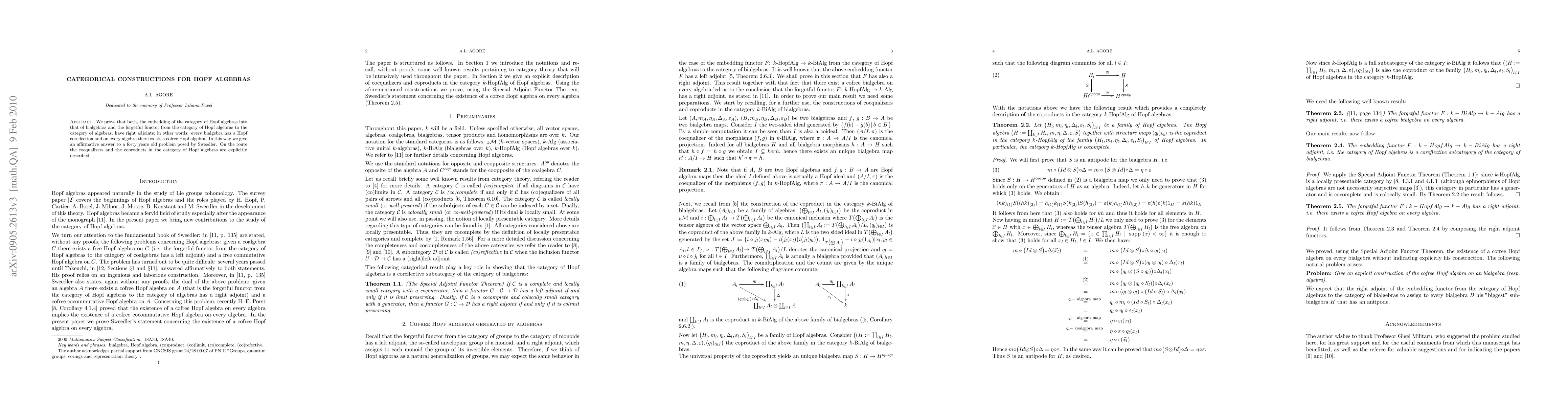 We prove that both, the embedding of the category of Hopf algebras into that of bialgebras and the forgetful functor from the category of Hopf algebras to the category of algebras, have right adjoints; in other words: every bialgebra has a Hopf coreflection and on every algebra there exists a cofree Hopf algebra. In this way we give an affirmative answer to a forty years old problem posed by Sweedler. On the route the coequalizers and the coproducts in the category of Hopf algebras are explicitly described.