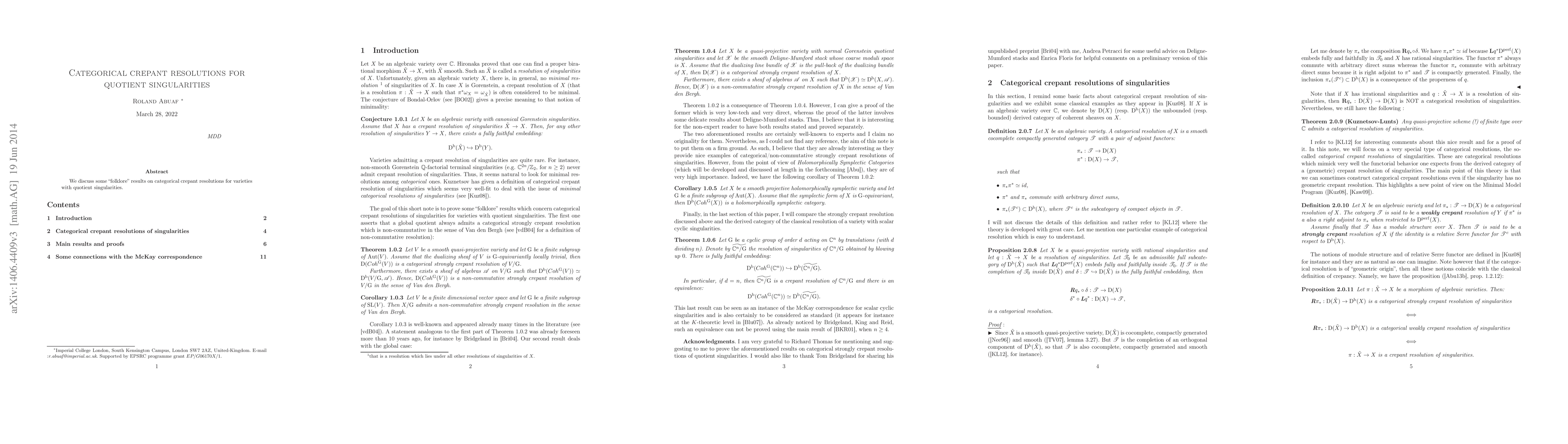Summary: This paper explores traditional results concerning categorical crepant resolutions for algebraic varieties exhibiting quotient singularities, aiming to formalize and elaborate on these foundational insights.