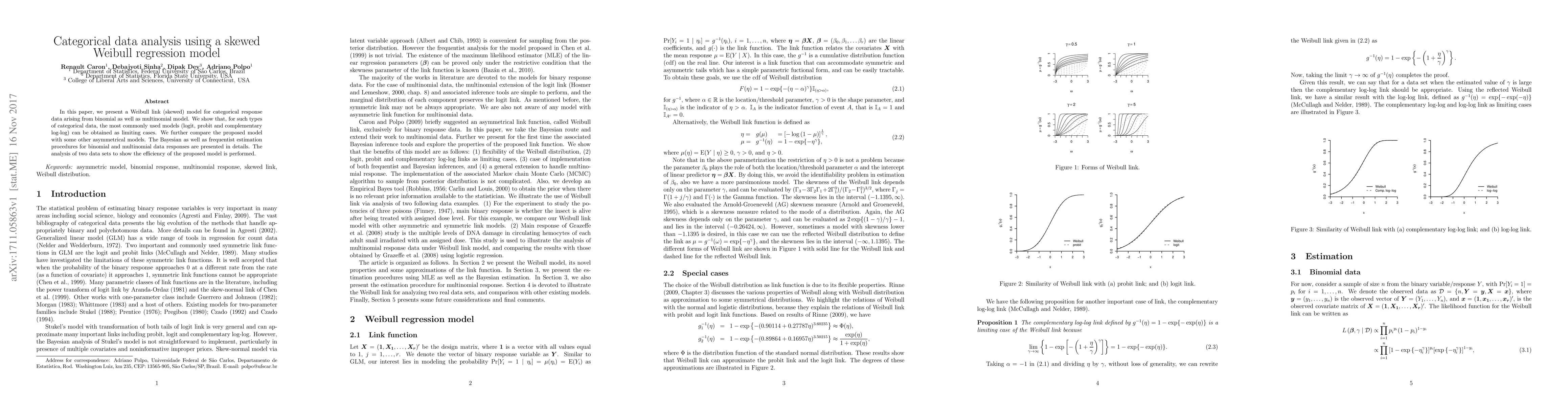 This paper introduces a skewed Weibull regression model for analyzing categorical response data from binomial and multinomial distributions, demonstrating its flexibility over traditional models like logit, probit, and complementary log-log. It details both Bayesian and frequentist estimation procedures and showcases the model's efficiency through analyses of two datasets.