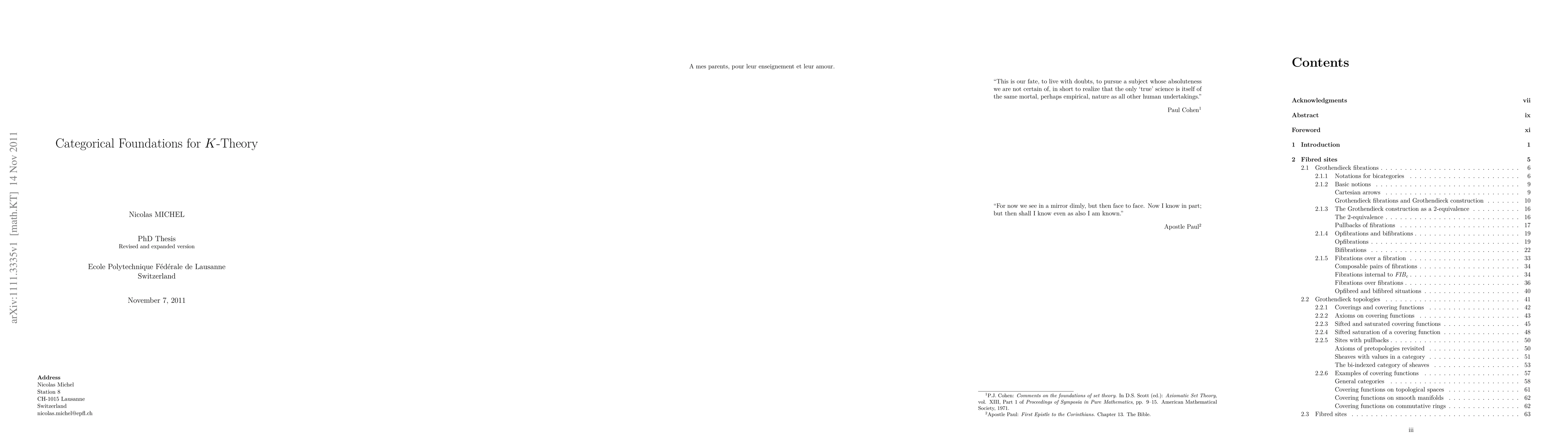 The paper introduces a new perspective on the categorical foundations of K-theory, emphasizing the role of structured categories and locally trivial modules.