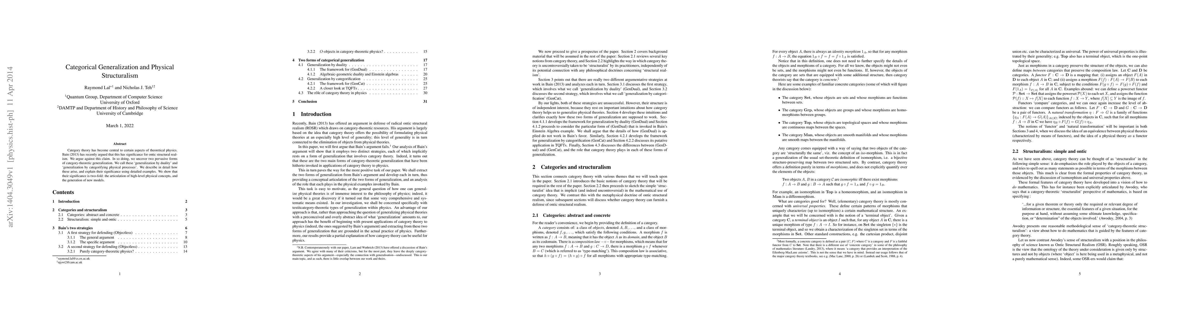 Category theory has become central to certain aspects of theoretical physics. Bain [Synthese, 190:1621--1635 (2013)] has recently argued that this has significance for ontic structural realism. We argue against this claim. In so doing, we uncover two pervasive forms of category-theoretic generalization. We call these `generalization by duality' and `generalization by categorifying physical processes'. We describe in detail how these arise, and explain their significance using detailed examples. We show that their significance is two-fold: the articulation of high-level physical concepts, and the generation of new models.