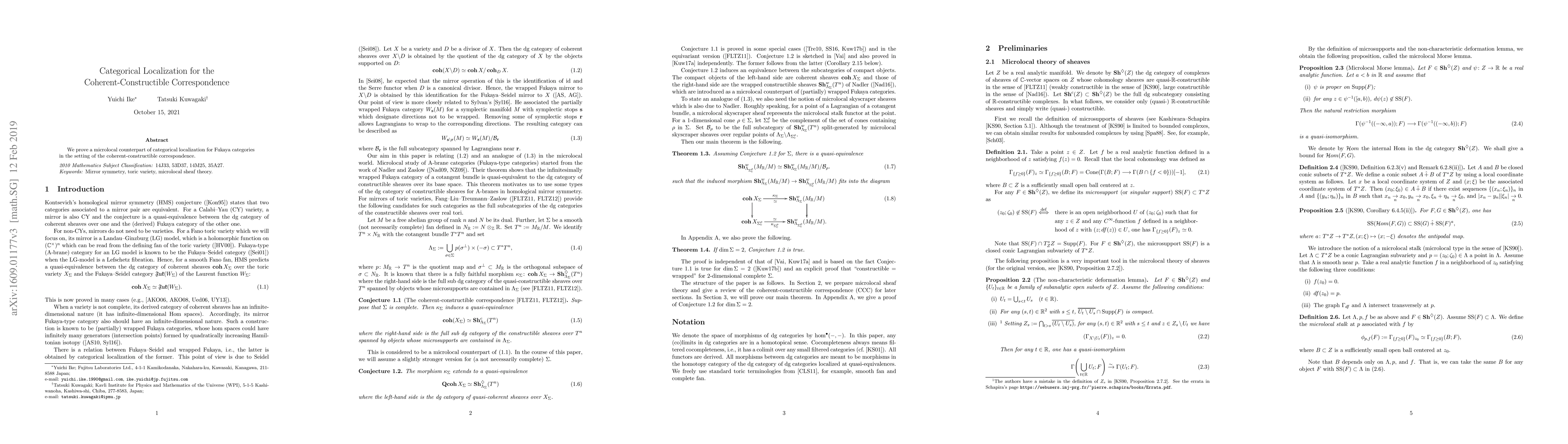 Summary: This paper establishes a microlocal version of categorical localization for Fukaya categories within the framework of the coherent-constructible correspondence, providing a novel perspective on the relationship between these mathematical structures.