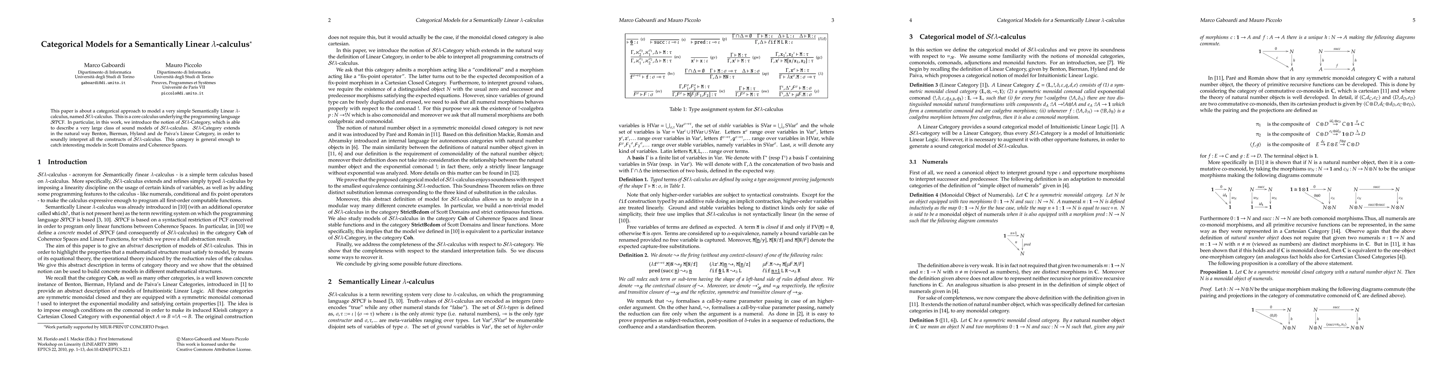 This paper is about a categorical approach to model a very simple Semantically Linear lambda calculus, named Sll-calculus. This is a core calculus underlying the programming language SlPCF. In particular, in this work, we introduce the notion of Sll-Category, which is able to describe a very large class of sound models of Sll-calculus. Sll-Category extends in the natural way Benton, Bierman, Hyland and de Paiva's Linear Category, in order to soundly interpret all the constructs of Sll-calculus. This category is general enough to catch interesting models in Scott Domains and Coherence Spaces.