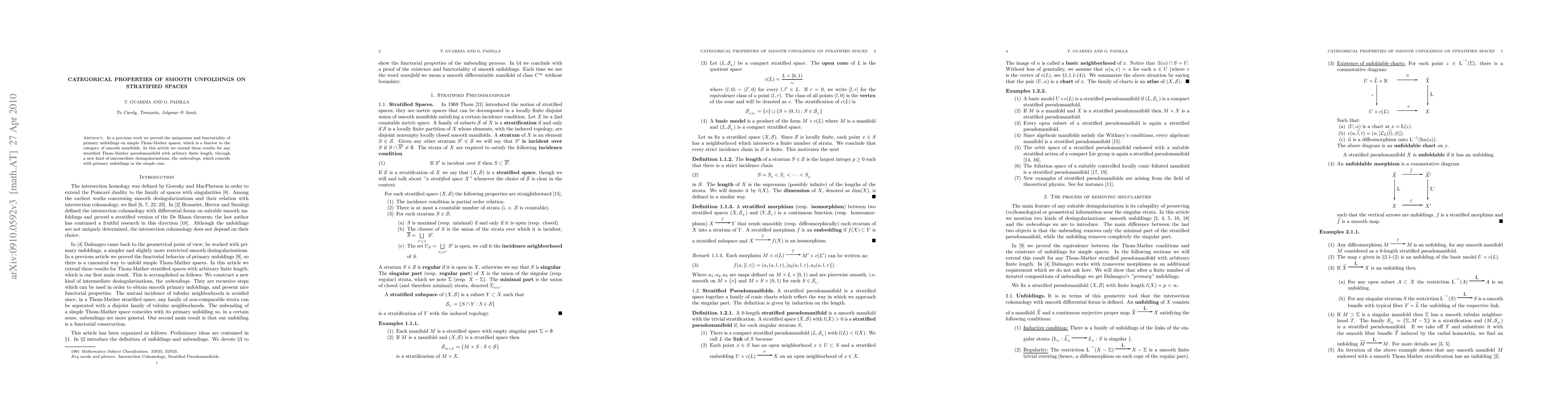 This paper extends the uniqueness and functoriality of primary unfoldings to stratified Thom-Mather pseudomanifolds using a novel technique called unbendings, which generalizes primary unfoldings for simple cases.