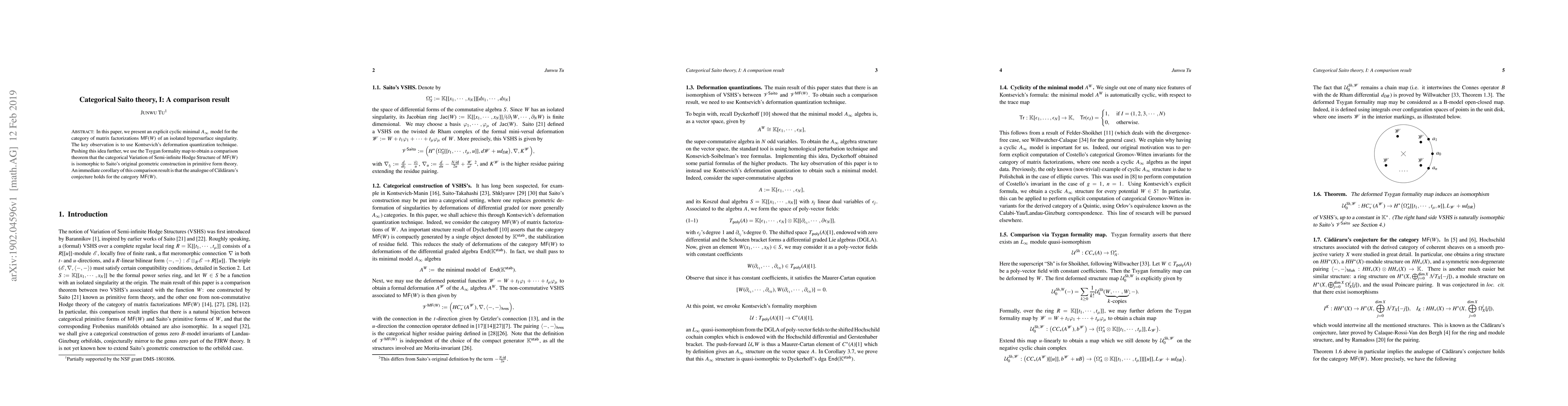 This paper introduces an explicit cyclic minimal A∞ model for matrix factorization categories of isolated hypersurface singularities, using Kontsevich's deformation quantization. A comparison theorem is then established between categorical Variation of Semi-infinite Hodge Structure and Saito's geometric construction, confirming an analogue of Caldararu's conjecture.
