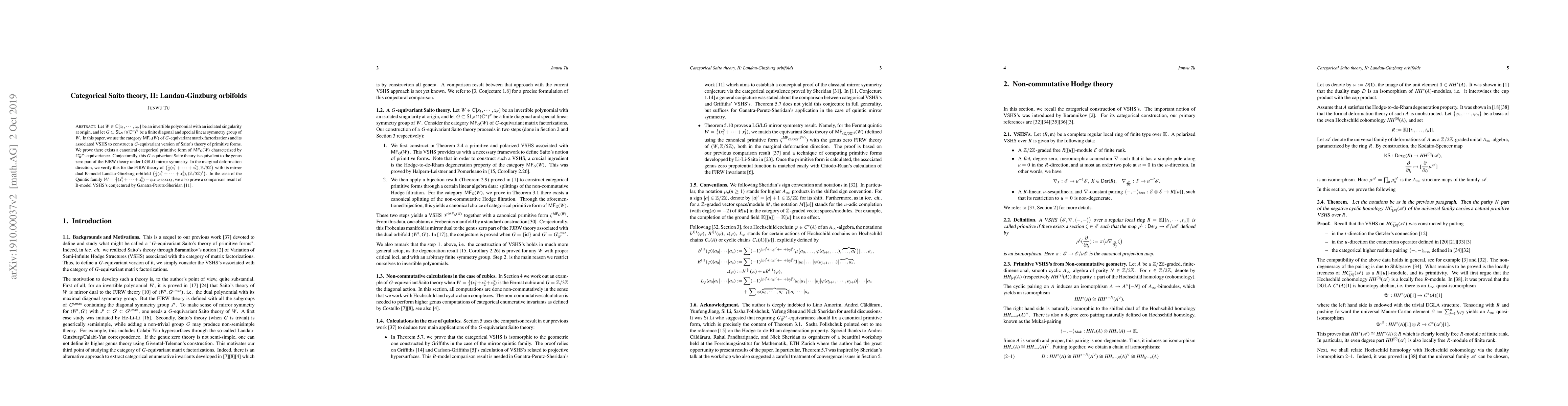 Let $W\in \mathbb{C}[x_1,\cdots,x_N]$ be an invertible polynomial with an isolated singularity at origin, and let $G\subset {{\sf SL}}_N\cap (\mathbb{C}^*)^N$ be a finite diagonal and special linear symmetry group of $W$. In this paper, we use the category ${{\sf MF}}_G(W)$ of $G$-equivariant matrix factorizations and its associated VSHS to construct a $G$-equivariant version of Saito's theory of primitive forms. We prove there exists a canonical categorical primitive form of ${{\sf MF}}_G(W)$ characterized by $G_W^{{\sf max}}$-equivariance. Conjecturally, this $G$-equivariant Saito theory is equivalent to the genus zero part of the FJRW theory under LG/LG mirror symmetry. In the marginal deformation direction, we verify this for the FJRW theory of $\big(\frac{1}{5}(x_1^5+\cdots+x_5^5),\mathbb{Z}/5\mathbb{Z}\big)$ with its mirror dual B-model Landau-Ginzburg orbifold $\big(\frac{1}{5}(x_1^5+\cdots+x_5^5), (\mathbb{Z}/5\mathbb{Z})^4\big)$. In the case of the Quintic family $\mathcal{W}=\frac{1}{5}(x_1^5+\cdots+x_5^5)-\psi x_1x_2x_3x_4x_5$, we also prove a comparison result of B-model VSHS's conjectured by Ganatra-Perutz-Sheridan.