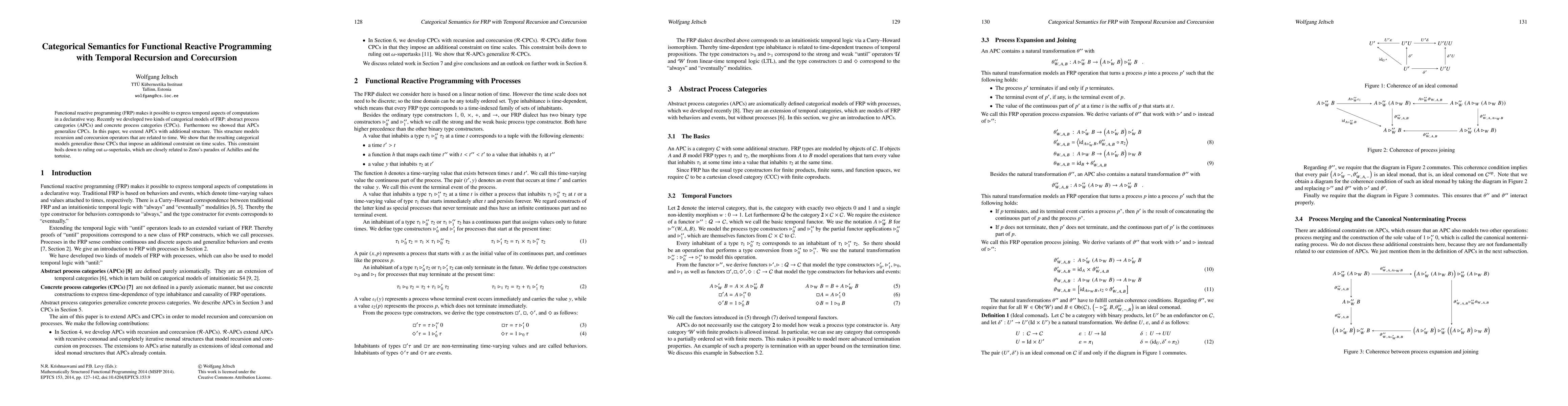 The findings provide a new understanding of temporal recursion and corecursion in FRP, building on previous work on abstract process categories and concrete process categories.