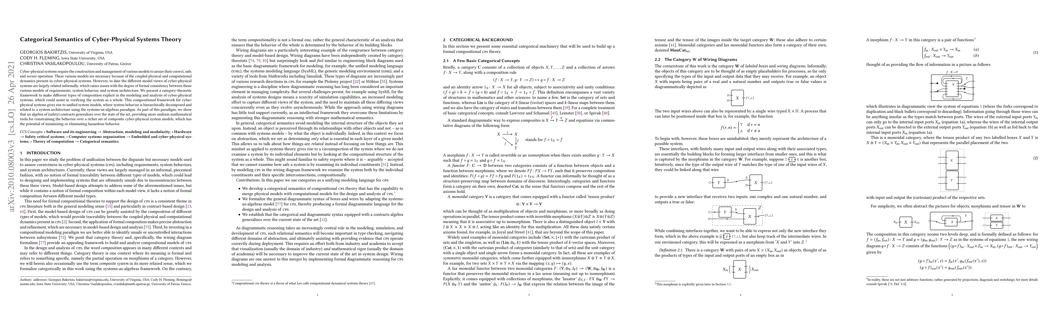 Cyber-physical systems require the construction and management of various models to assure their correct, safe, and secure operation. These various models are necessary because of the coupled physical and computational dynamics present in cyber-physical systems. However, to date the different model views of cyber-physical systems are largely related informally, which raises issues with the degree of formal consistency between those various models of requirements, system behavior, and system architecture. We present a category-theoretic framework to make different types of composition explicit in the modeling and analysis of cyber-physical systems, which could assist in verifying the system as a whole. This compositional framework for cyber-physical systems gives rise to unified system models, where system behavior is hierarchically decomposed and related to a system architecture using the systems-as-algebras paradigm. As part of this paradigm, we show that an algebra of (safety) contracts generalizes over the state of the art, providing more uniform mathematical tools for constraining the behavior over a richer set of composite cyber-physical system models, which has the potential of minimizing or eliminating hazardous behavior.