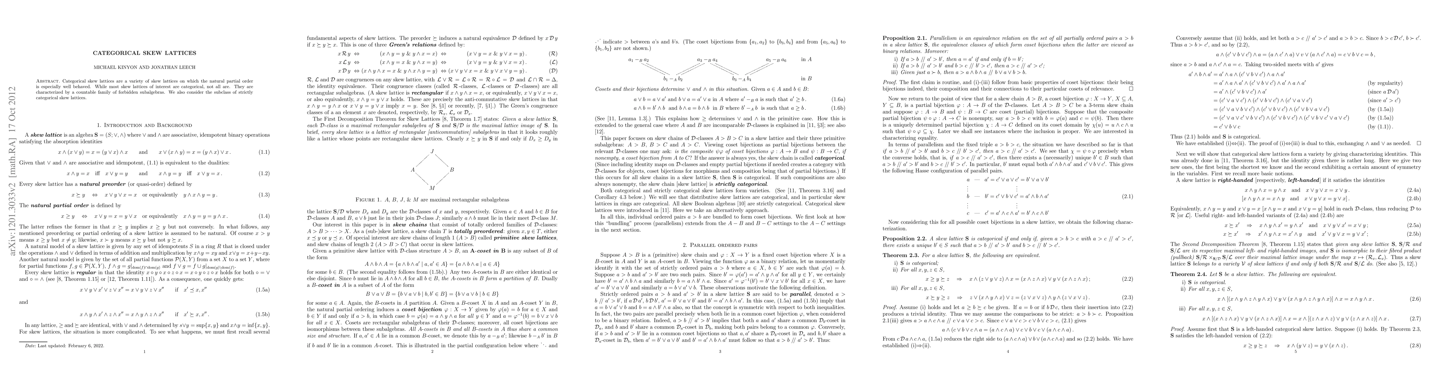 Categorical skew lattices exhibit a well-behaved natural partial order and are characterized by a countable set of forbidden subalgebras; the subclass of strictly categorical skew lattices is also explored.