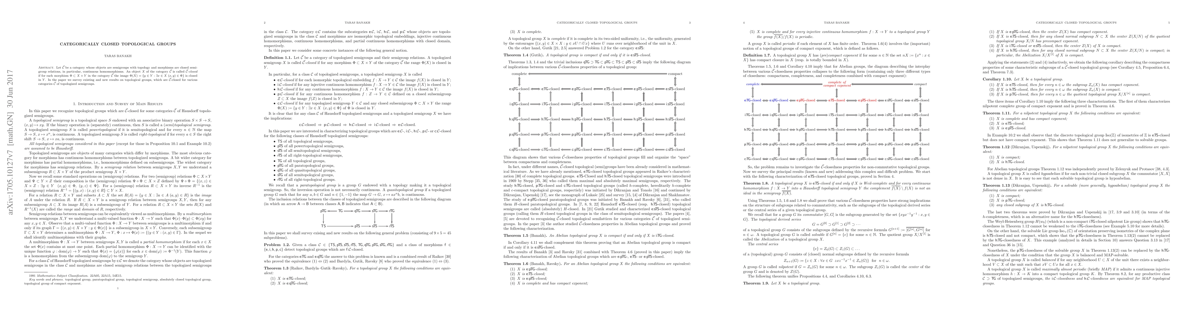 This paper investigates topological groups that are categorically closed within specific subcategories of topologized semigroups, focusing on those where morphisms include embeddings and various types of homomorphisms, with a particular emphasis on Hausdorff topological (semi)groups.