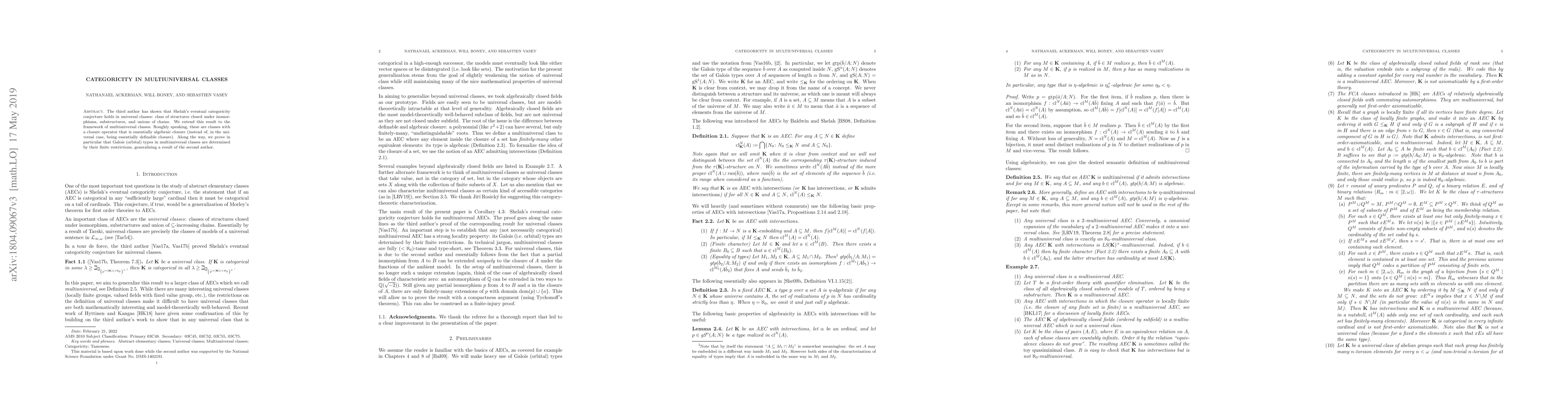 The research employed a combination of mathematical logic and model theory to establish categoricity in universal classes.