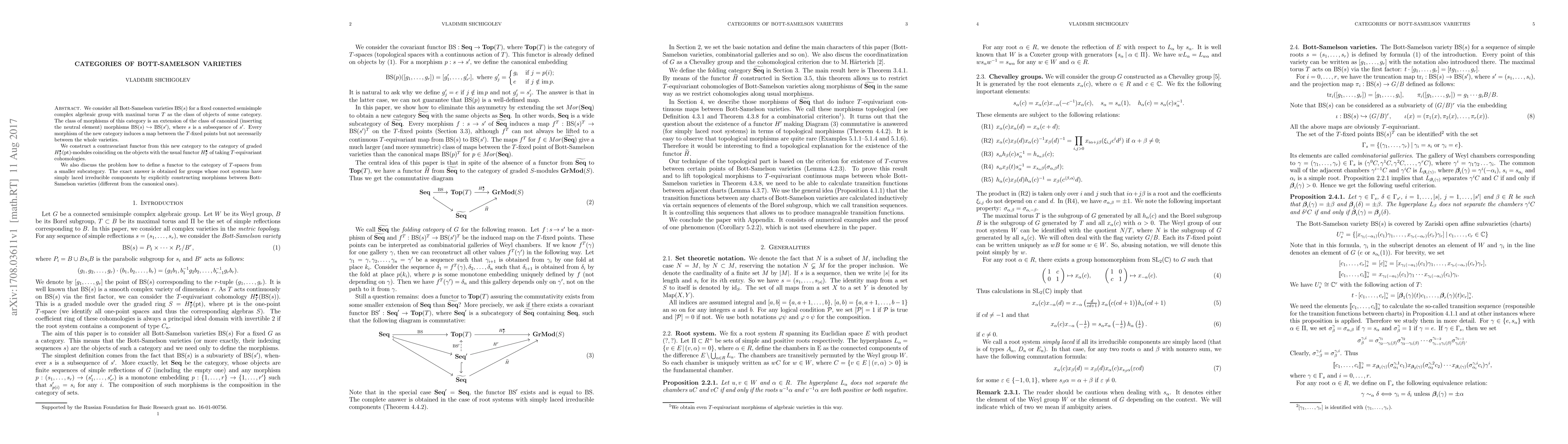 This paper explores the classification and morphisms of Bott-Samelson varieties for connected semisimple complex algebraic groups, constructing a contravariant functor to graded modules and discussing the extension to $T$-spaces for groups with simply laced root systems.