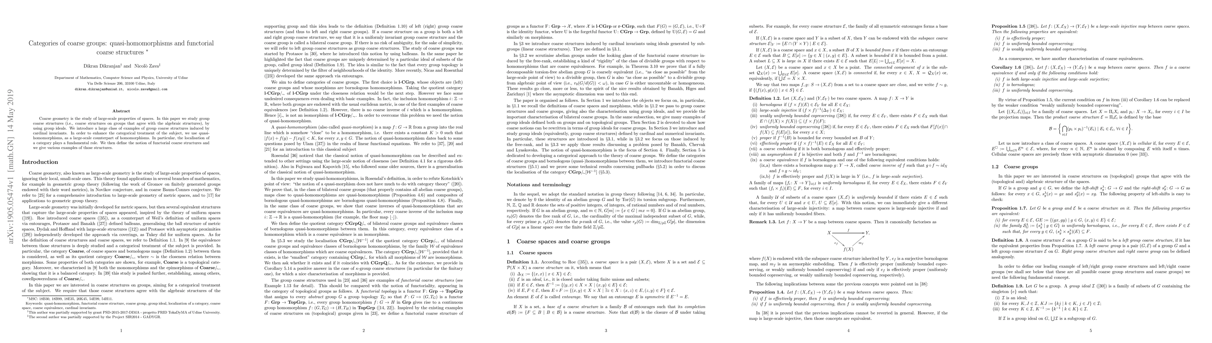 Coarse geometry is the study of large-scale properties of spaces. In this paper we study group coarse structures (i.e., coarse structures on groups that agree with the algebraic structures), by using group ideals. We introduce a large class of examples of group coarse structures induced by cardinal invariants. In order to enhance the categorical treatment of the subject, we use quasi-homomorphisms, as a large-scale counterpart of homomorphisms. In particular, the localisation of a category plays a fundamental role. We then define the notion of functorial coarse structures and we give various examples of those structures.