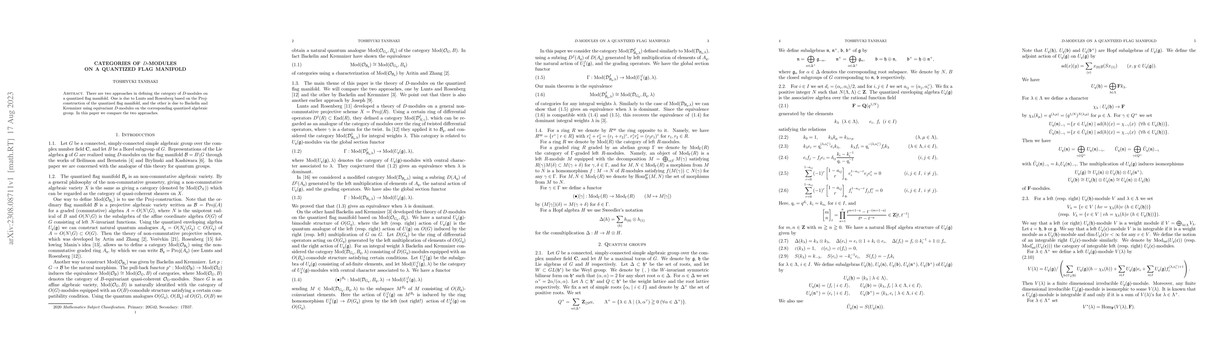 This paper compares two approaches to defining the category of $D$-modules on a quantized flag manifold: one based on the $\mathrm{Proj}$-construction by Lunts and Rosenberg, and the other employing equivariant $D$-modules by Backelin and Kremnizer.