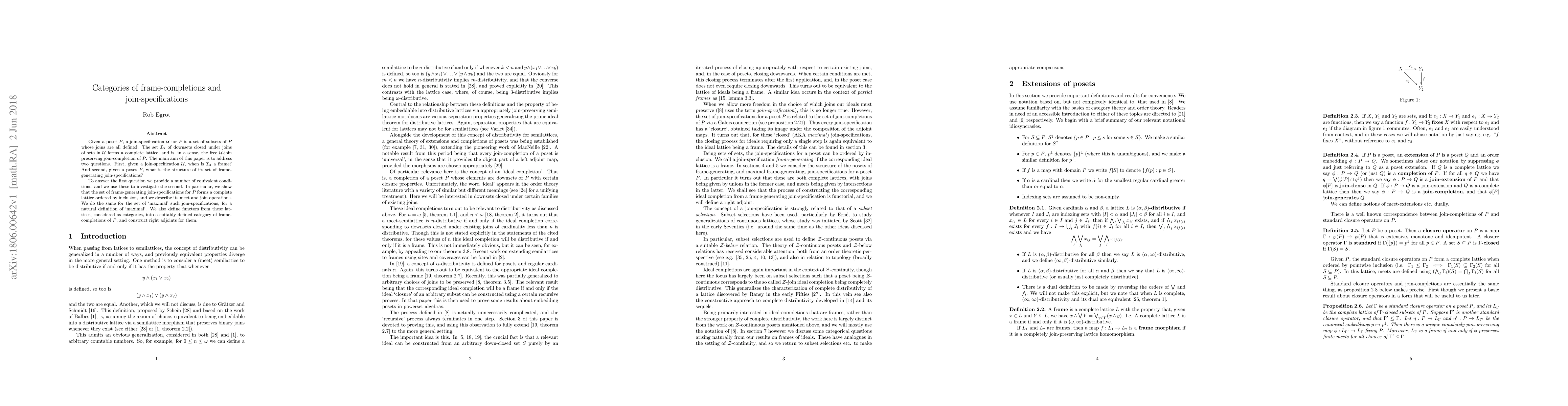 This paper explores the structure and properties of join-specifications for posets, specifically when the set of downsets closed under these specifications forms a frame. It provides conditions under which such a set forms a complete lattice and describes the lattice structure of frame-generating join-specifications, including their meet and join operations.