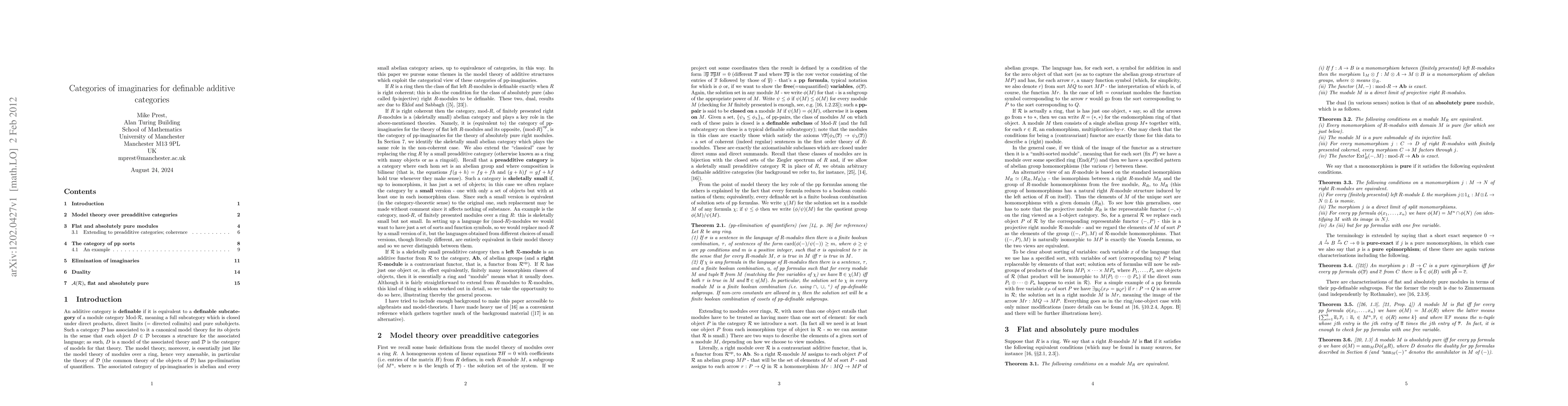We develop some aspects of the model theory of additive structures, with particular emphasis on the abelian category of pp-imaginaries.