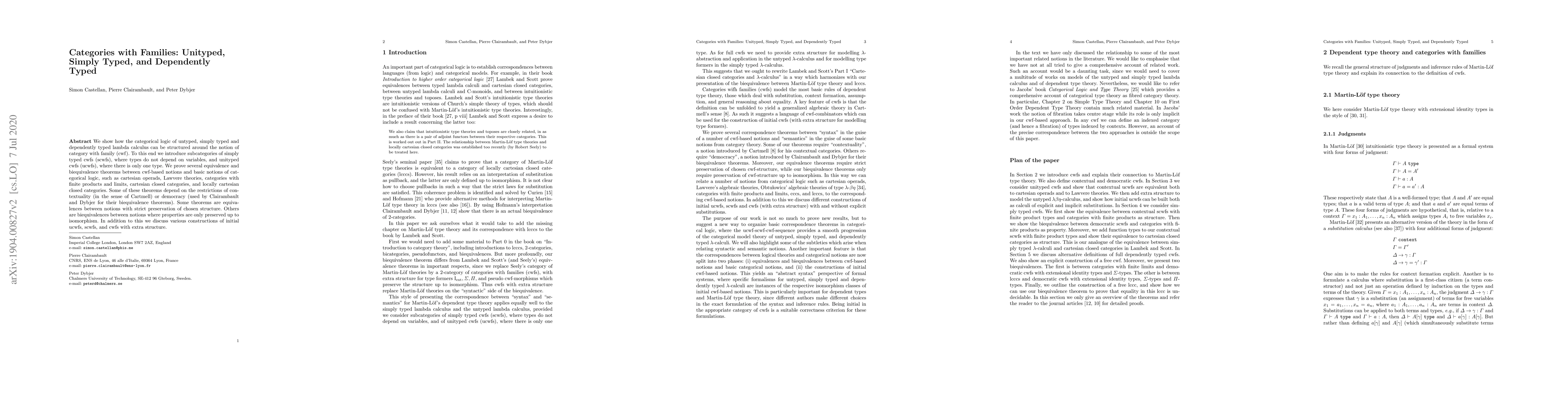 Researchers show how categorical logic can be structured around categories with families, linking untyped, simply typed, and dependently typed lambda calculus to various notions in categorical logic. They prove equivalences and biequivalences between these concepts, shedding light on their relationships and implications.