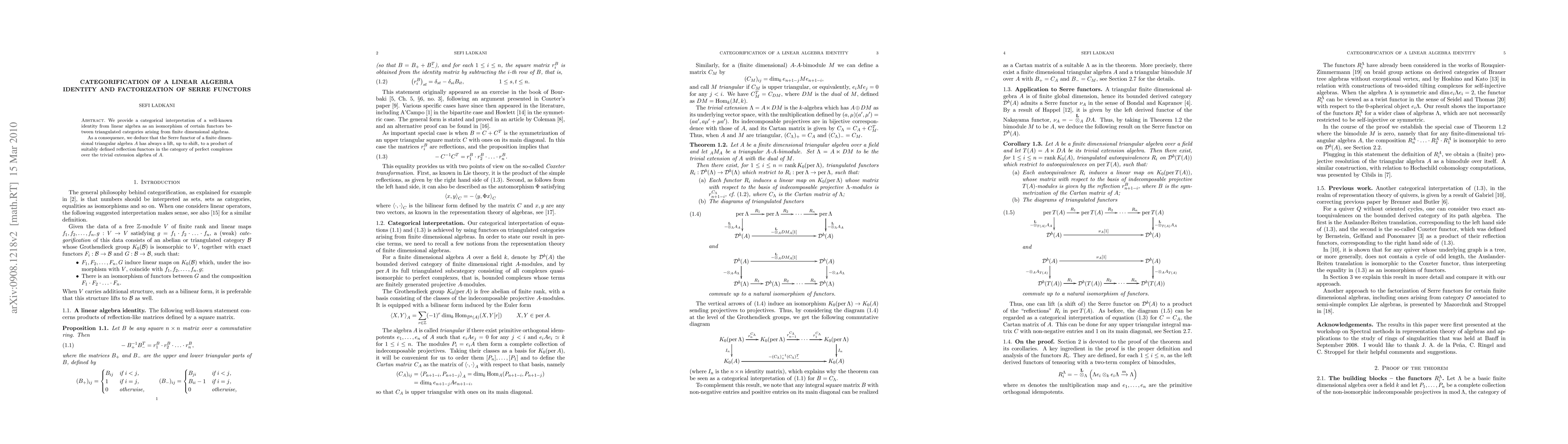 We provide a categorical interpretation of a well-known identity from linear algebra as an isomorphism of certain functors between triangulated categories arising from finite dimensional algebras. As a consequence, we deduce that the Serre functor of a finite dimensional triangular algebra A has always a lift, up to shift, to a product of suitably defined reflection functors in the category of perfect complexes over the trivial extension algebra of A.