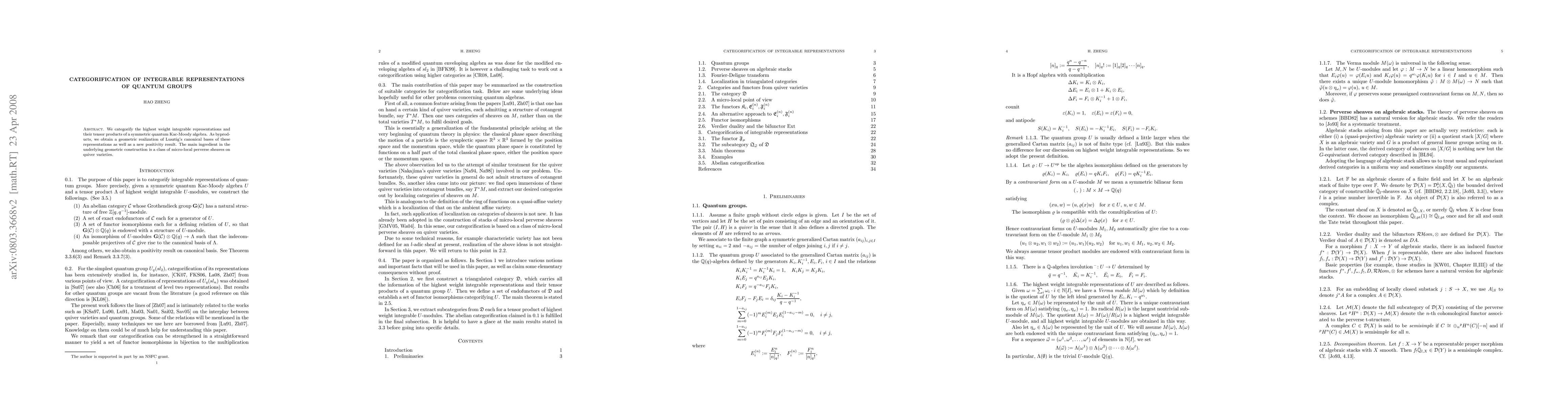 We categorify the highest weight integrable representations and their tensor products of a symmetric quantum Kac-Moody algebra. As byproducts, we obtain a geometric realization of Lusztig's canonical bases of these representations as well as a new positivity result. The main ingredient in the underlying geometric construction is a class of micro-local perverse sheaves on quiver varieties.