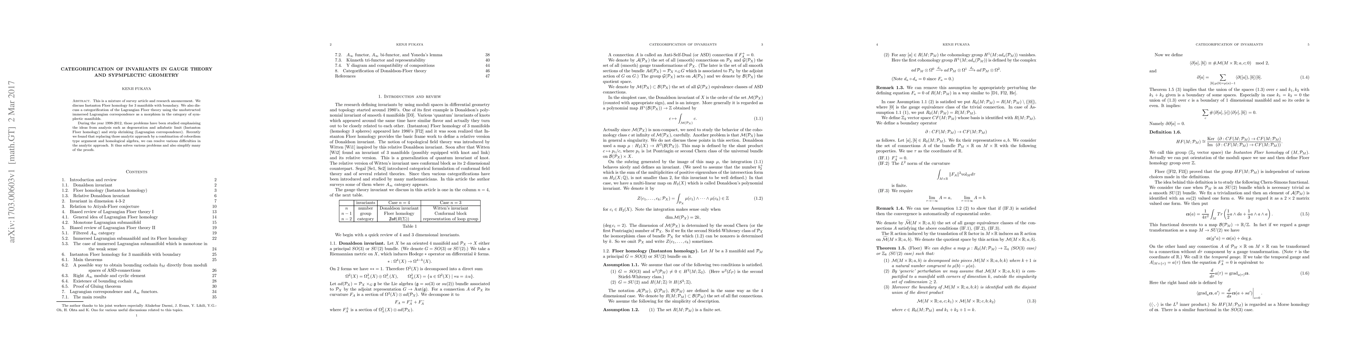 This is a mixture of survey article and research anouncement. We discuss Instanton Floer homology for 3 manifolds with boundary. We also discuss a categorification of the Lagrangian Floer theory using the unobstructed immersed Lagrangian correspondence as a morphism in the category of symplectic manifolds. During the year 1998-2012, those problems have been studied emphasising the ideas from analysis such as degeneration and adiabatic limit (Instanton Floer homology) and strip shrinking (Lagrangian correspondence). Recently we found that replacing those analytic approach by a combination of cobordism type argument and homological algebra, we can resolve various difficulties in the analytic approach. It thus solves various problems and also simplify many of the proofs.