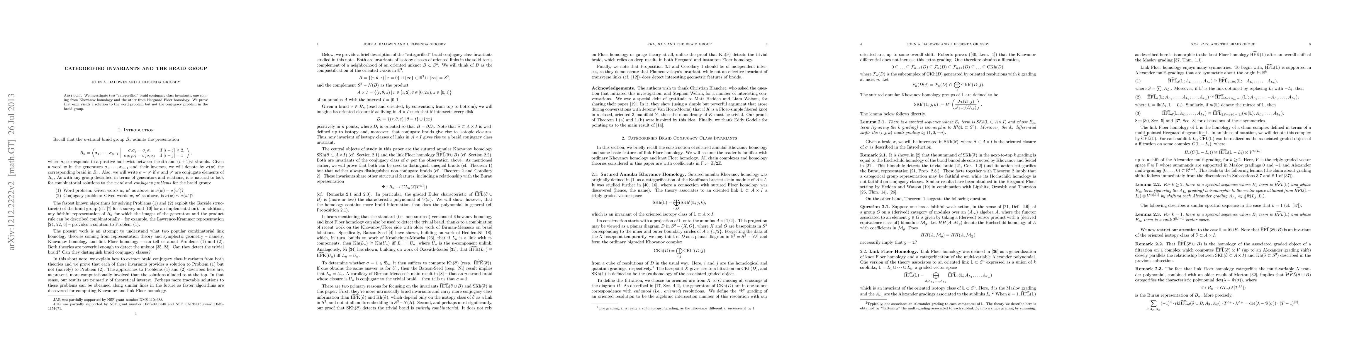 The paper investigates categorified invariants from Khovanov and Heegaard Floer homologies, focusing on their applications to the braid group.