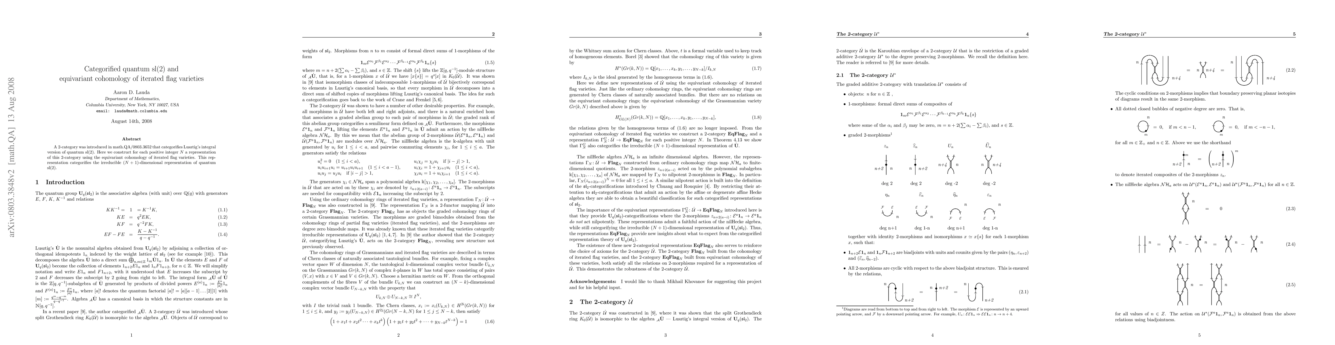 Summary: This paper constructs a representation of a 2-category that categorifies Lusztig's integral quantum sl(2) using the equivariant cohomology of iterated flag varieties, thereby providing a higher-dimensional generalization of the irreducible representations.