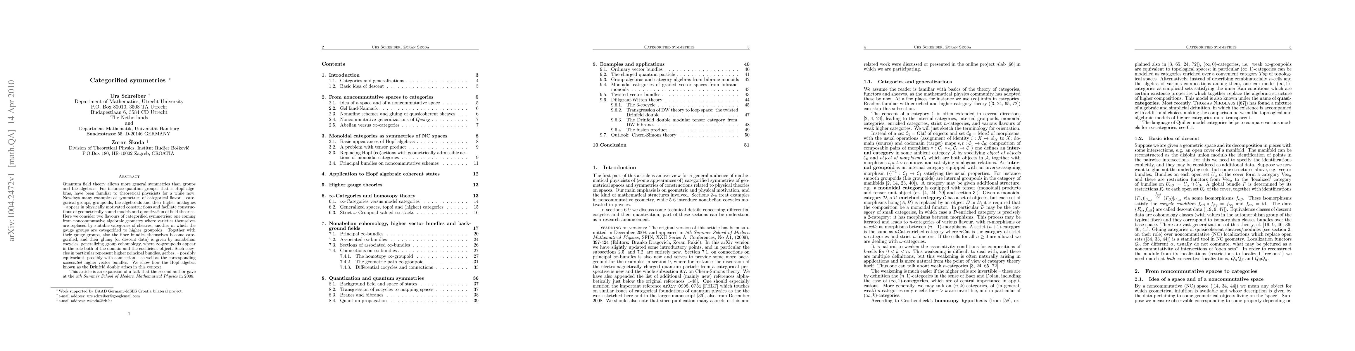 This paper explores categorified symmetries in quantum field theory, focusing on categorical groups and higher analogues, such as groupoids and Lie algebroids. It examines two types of categorified symmetries: one from noncommutative algebraic geometry and another where gauge groups are replaced by higher groupoids, leading to the emergence of higher principal bundles and the Drinfeld double Hopf algebra.