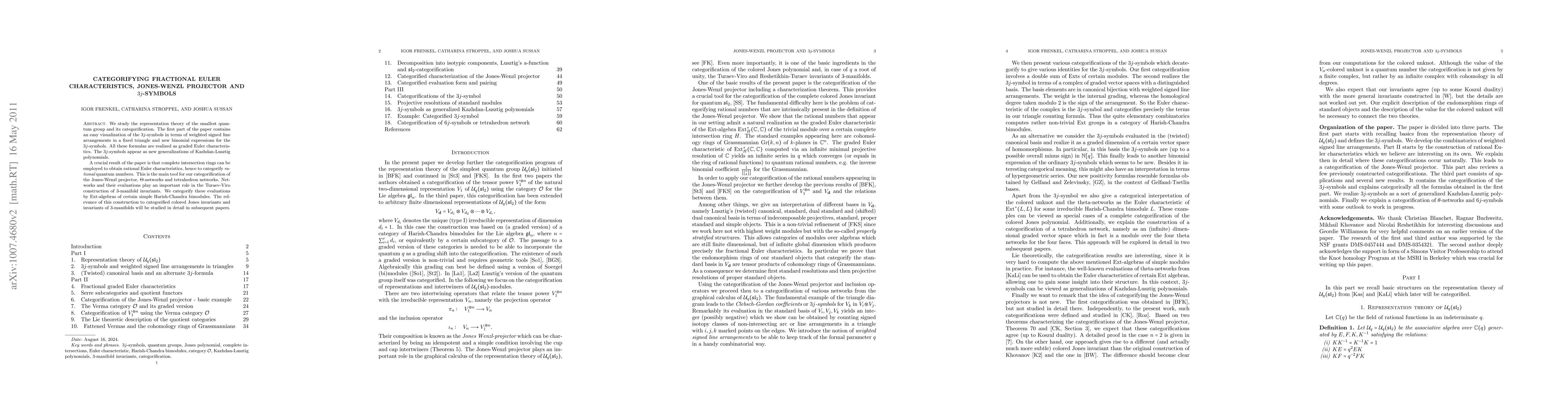 We study the representation theory of the smallest quantum group and its categorification. The first part of the paper contains an easy visualization of the 3j-symbols in terms of weighted signed line arrangements in a fixed triangle and new binomial expressions for the 3j-symbols. All these formulas are realized as graded Euler characteristics. The 3j-symbols appear as new generalizations of Kazhdan-Lusztig polynomials. A crucial result of the paper is that complete intersection rings can be employed to obtain rational Euler characteristics, hence to categorify rational quantum numbers. This is the main tool for our categorification of the Jones-Wenzl projector, Theta-networks and tetrahedron networks. Networks and their evaluations play an important role in the Turaev-Viro construction of 3-manifold invariants, \cite{TV}. We categorify these evaluations by Ext-algebras of certain simple Harish-Chandra bimodules. The relevance of this construction to categorified colored Jones invariants and invariants of 3-manifolds will be studied in detail in subsequent papers.