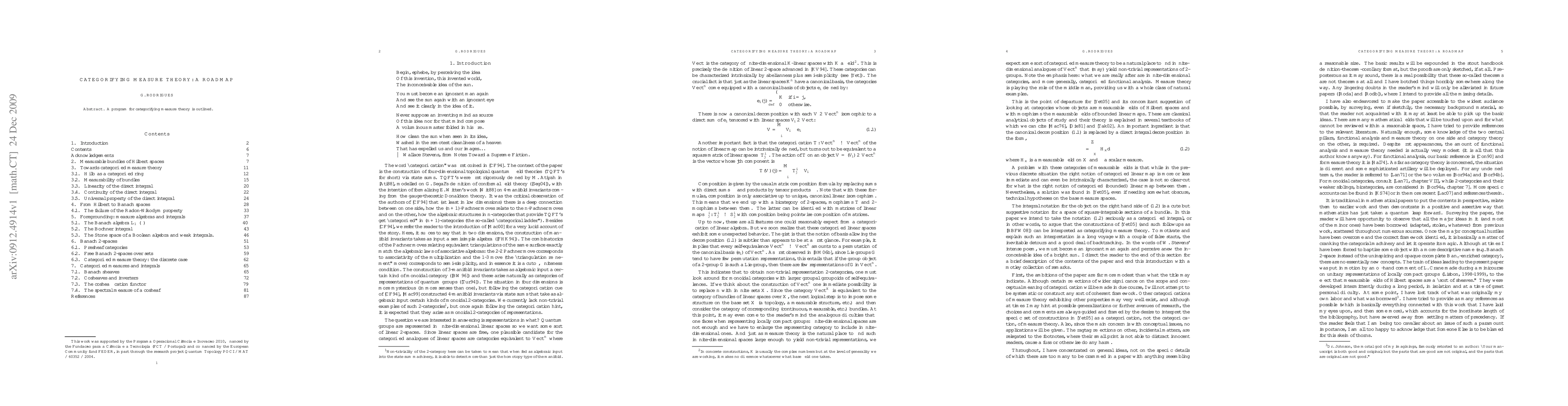 Summary: This paper presents a conceptual framework for categorifying measure theory, aiming to translate classical measure theoretic concepts into a higher-level categorical framework, thereby enriching the foundational understanding of measure theory.