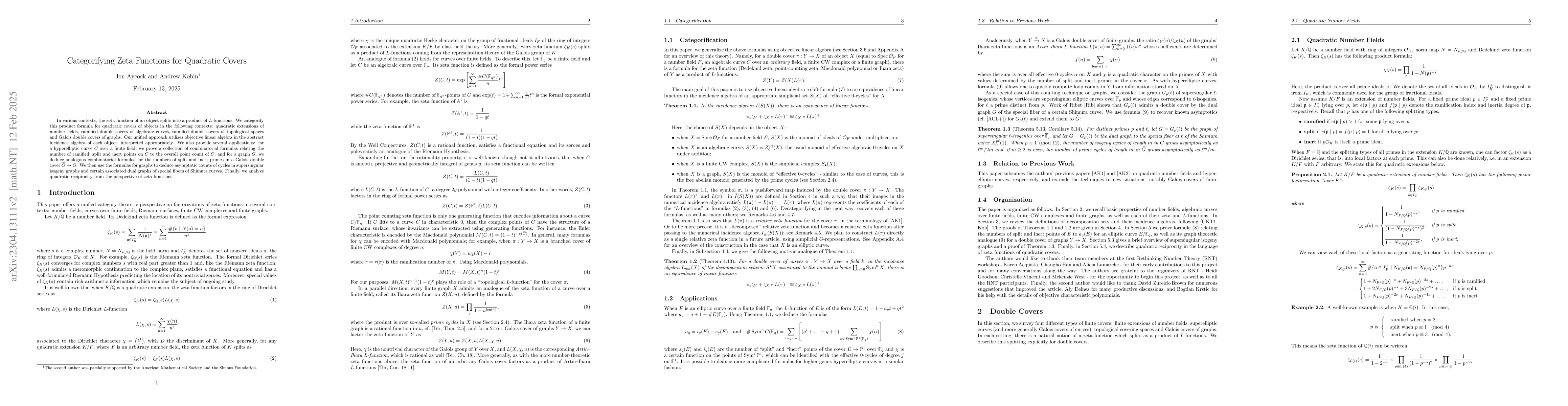 The zeta function of a hyperelliptic curve $C$ over a finite field factors into a product of $L$-functions, one of which is the $L$-function of $C$. We categorify this formula using objective linear algebra in the abstract incidence algebra of the poset of effective $0$-cycles of $C$. As an application, we prove a collection of combinatorial formulas relating the number of ramified, split and inert points on $C$ to the overall point count of $C$.