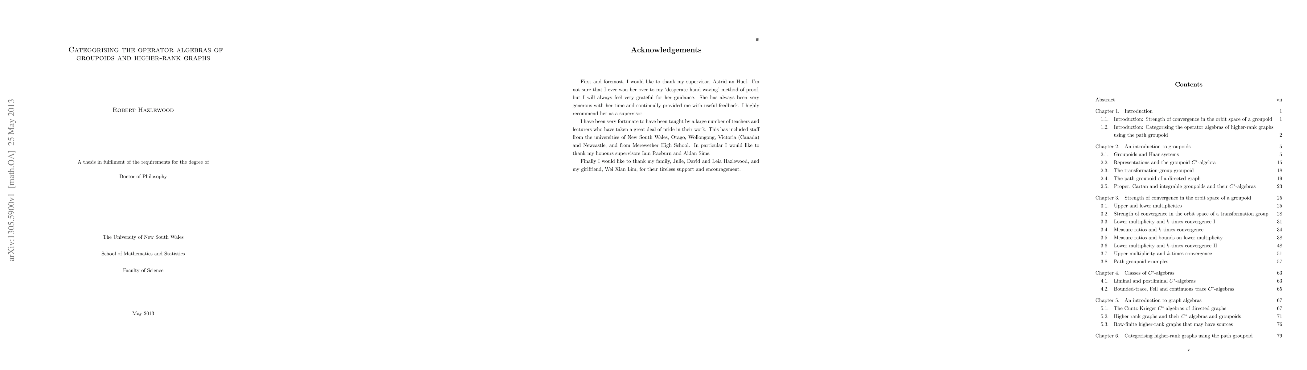 This dissertation concerns the classification of groupoid and higher-rank graph C*-algebras and has two main components. Firstly, for a groupoid it is shown that the notions of strength of convergence in the orbit space and measure-theoretic accumulation along the orbits are equivalent ways of realising multiplicity numbers associated to a sequence of induced representations of the groupoid C*-algebra. Examples of directed graphs are given, showing how to determine the multiplicity numbers associated to various sequences of induced representations of the directed graph C*-algebras. The second component of this dissertation uses path groupoids to develop various characterisations of the C*-algebras of higher-rank graphs. Necessary and sufficient conditions are developed for the Cuntz-Krieger C*-algebras of row-finite higher-rank graphs to be liminal and to be postliminal. When Kumjian and Pask's path groupoid is principal, it is shown precisely when these C*-algebras have bounded trace, are Fell, and have continuous trace. Necessary and sufficient conditions are provided for the path groupoids of row-finite higher-rank graphs without sources to have closed orbits and to have locally closed orbits. When these path groupoids are principal, necessary and sufficient conditions are provided for them to be integrable, to be Cartan and to be proper.