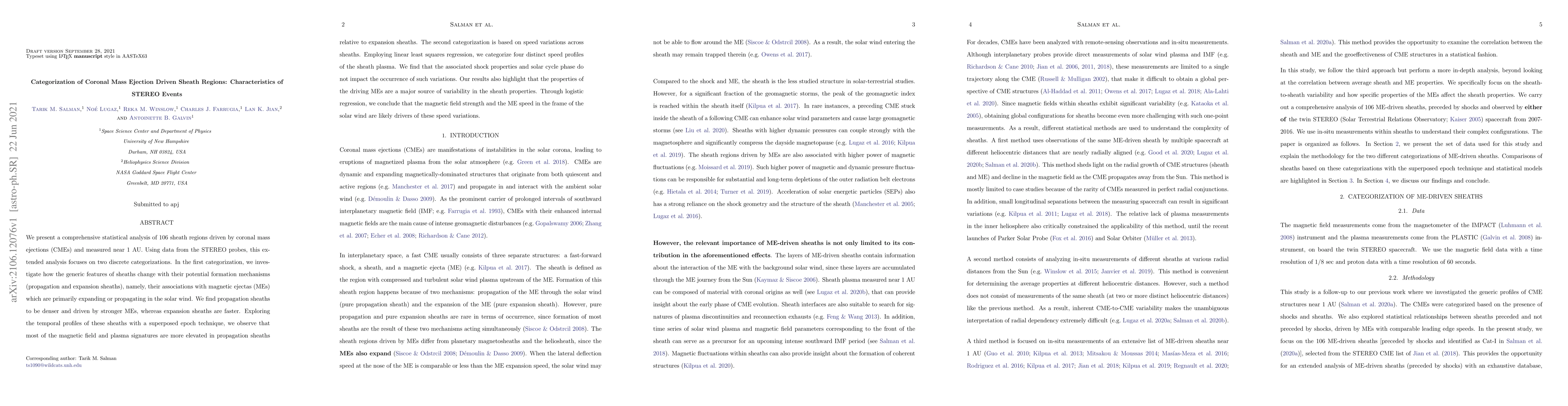 This paper categorizes 106 sheath regions driven by coronal mass ejections from STEREO probe data, finding that propagation sheaths are denser and linked to stronger magnetic ejecta, while expansion sheaths are faster. It also identifies four distinct speed profiles of sheath plasma, noting that driving magnetic field strength and ejecta speed are key factors in these variations.