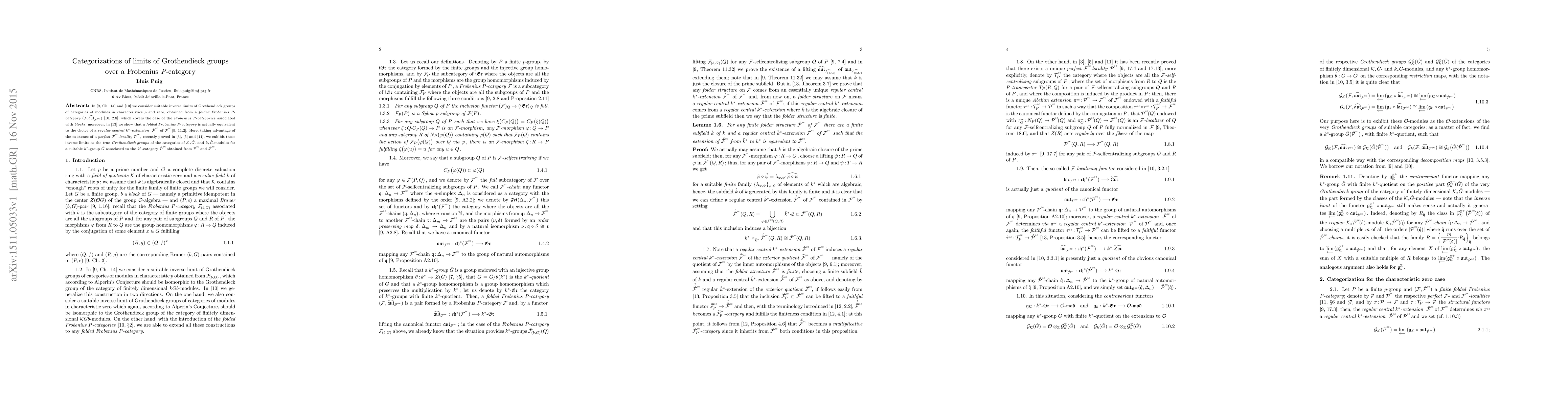 This paper categorizes the limits of Grothendieck groups over a Frobenius P-category, demonstrating their equivalence to the Grothendieck groups of K*\hat G- and k*\hat G-modules for a k*-group \hat G, using the recently proven perfect F-locality L. It also resolves a question posed by Linckelmann by showing the equivalence of a folded Frobenius P-category to a regular central k*-extension.