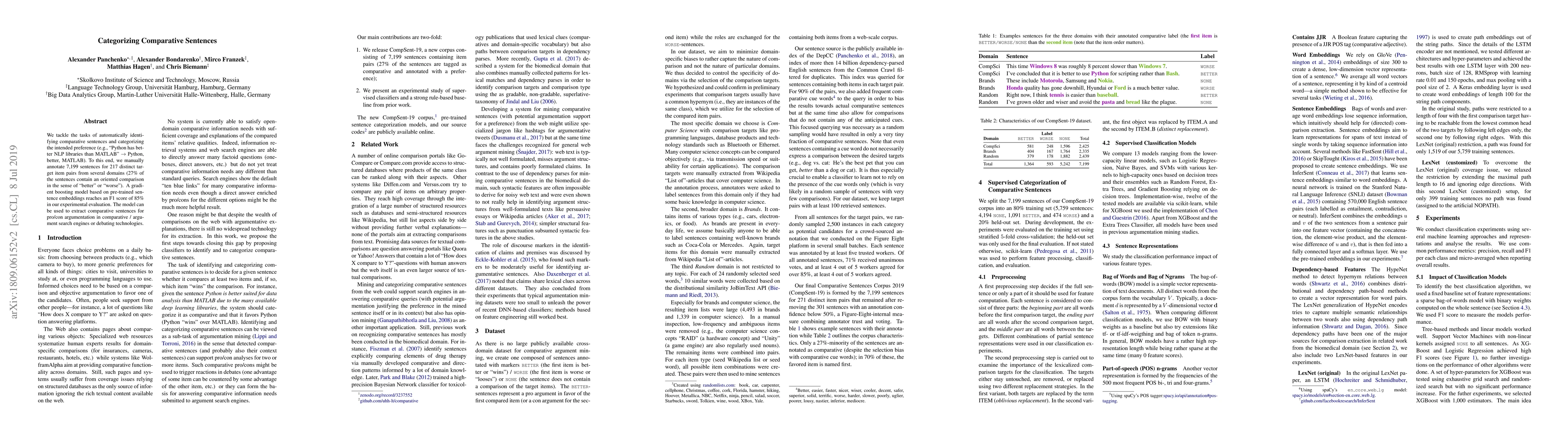 We tackle the tasks of automatically identifying comparative sentences and categorizing the intended preference (e.g., "Python has better NLP libraries than MATLAB" => (Python, better, MATLAB). To this end, we manually annotate 7,199 sentences for 217 distinct target item pairs from several domains (27% of the sentences contain an oriented comparison in the sense of "better" or "worse"). A gradient boosting model based on pre-trained sentence embeddings reaches an F1 score of 85% in our experimental evaluation. The model can be used to extract comparative sentences for pro/con argumentation in comparative / argument search engines or debating technologies.