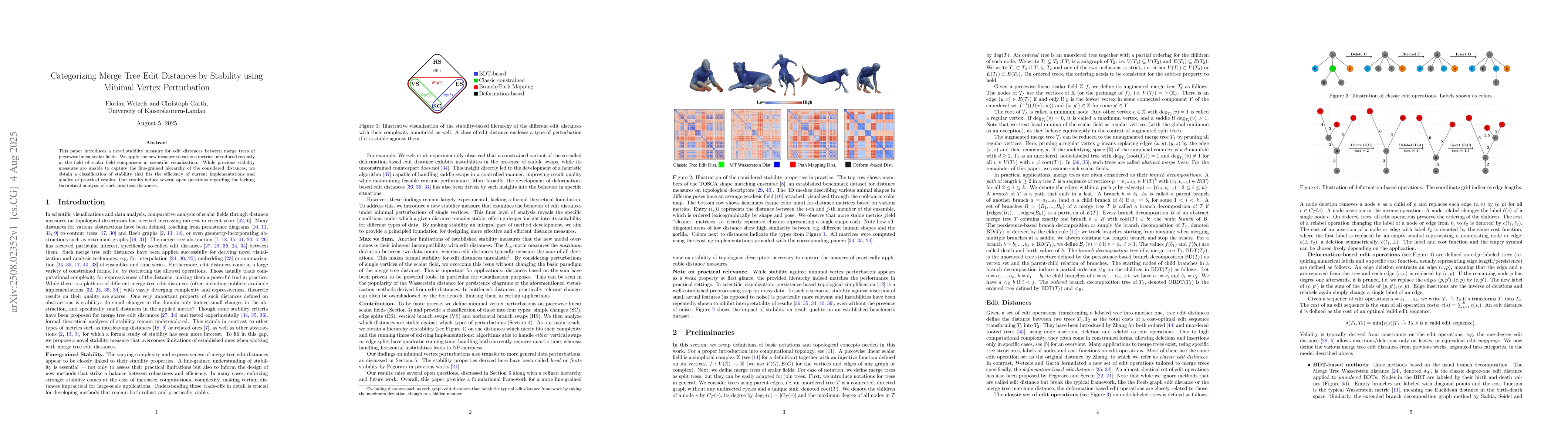 This paper introduces a novel stability measure for edit distances between merge trees of piecewise linear scalar fields. We apply the new measure to various metrics introduced recently in the field of scalar field comparison in scientific visualization. While previous stability measures are unable to capture the fine-grained hierarchy of the considered distances, we obtain a classification of stability that fits the efficiency of current implementations and quality of practical results. Our results induce several open questions regarding the lacking theoretical analysis of such practical distances.