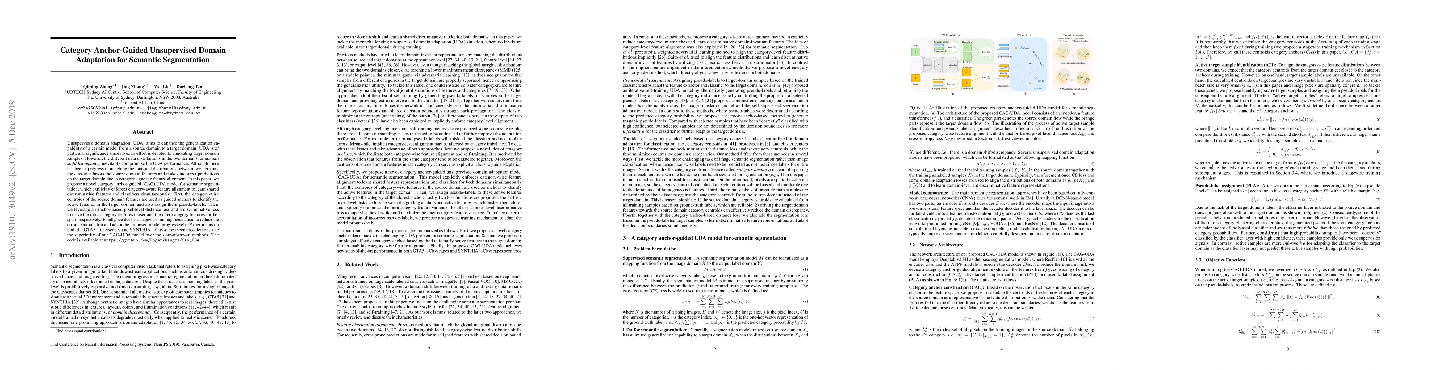 This paper proposes a category anchor-guided unsupervised domain adaptation (CAG-UDA) model for semantic segmentation, which uses category-wise centroids as anchors to enforce category-aware feature alignment, improving domain adaptation performance. The model employs an anchor-based loss and a discriminative loss to enhance feature discrimination and is trained in stages to minimize error accumulation.