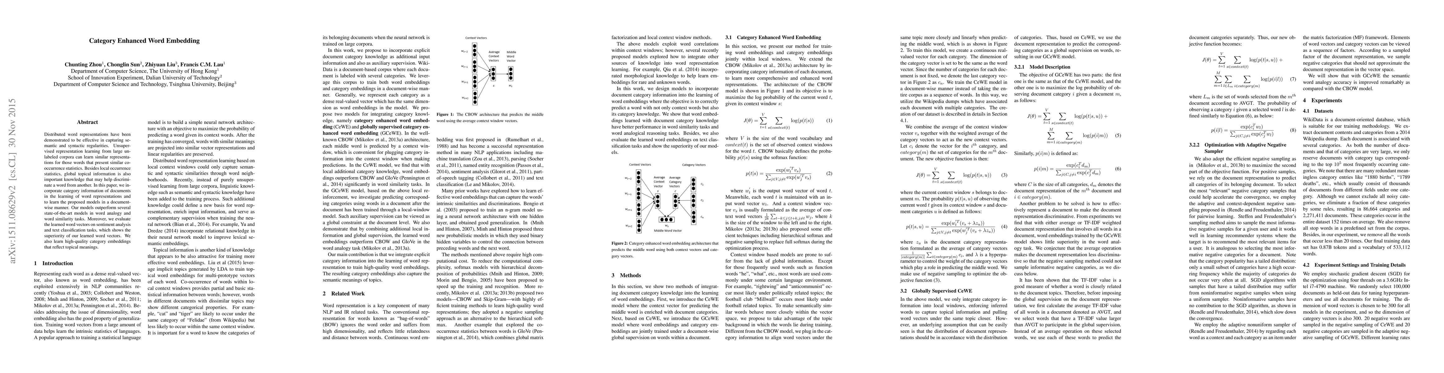 A new word embedding model is proposed that incorporates category information to improve semantic understanding, outperforming existing models in various tasks such as sentiment analysis and text classification.
