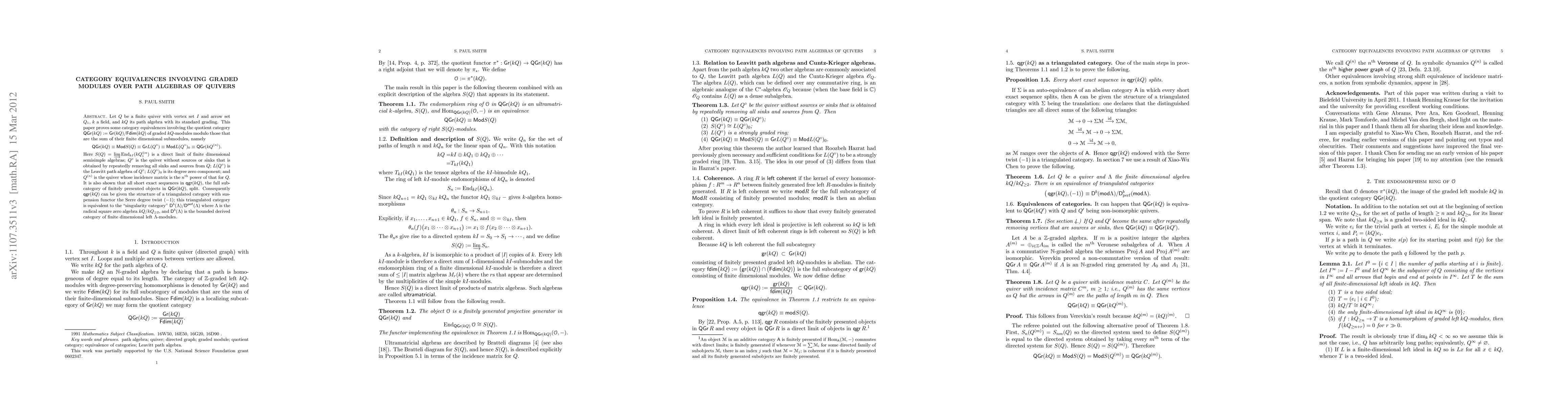 Let kQ be the path algebra of a quiver Q with its standard grading. We show that the category of graded kQ-modules modulo those that are the sum of their finite dimensional submodules, QGr(kQ), is equivalent to several other categories: the graded modules over a suitable Leavitt path algebra, the modules over a certain direct limit of finite dimensional multi-matrix algebras, QGr(kQ') where Q' is the quiver whose incidence matrix is the n^{th} power of that for Q, and others. A relation with a suitable Cuntz-Krieger algebra is established. All short exact sequences in the full subcategory of finitely presented objects in QGr(kQ), split so that subcategory can be given the structure of a triangulated category with suspension functor the Serre degree twist (-1); it is shown that this triangulated category is equivalent to the "singularity category" for the radical square zero algebra kQ/kQ_{\ge 2}.