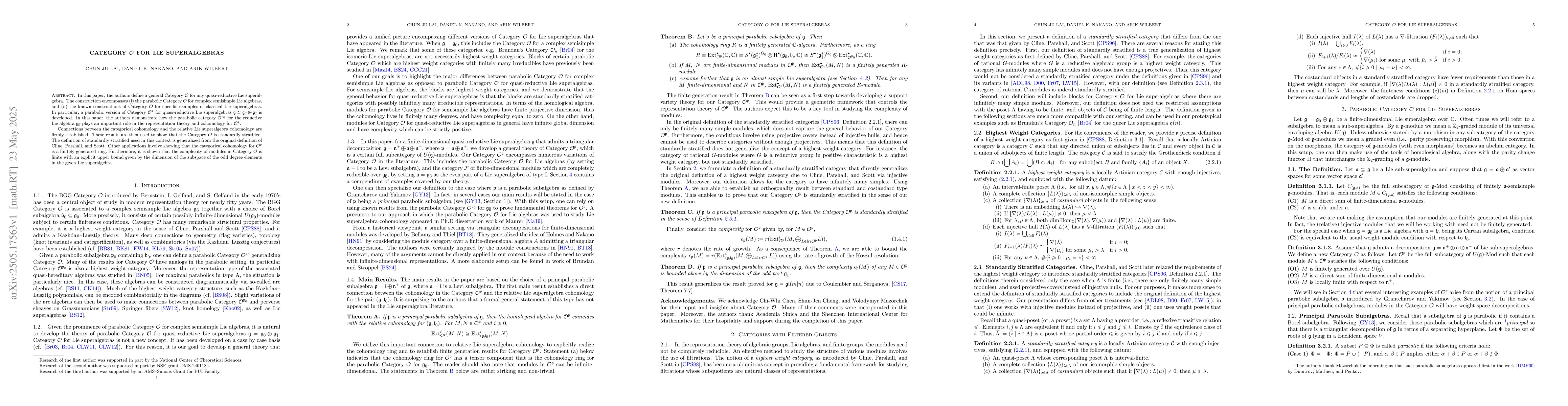 Researchers define a general Category $ extcal{O}$ framework for quasi-reductive Lie superalgebras, exploring its connections to representation theory, cohomology, and module complexity.