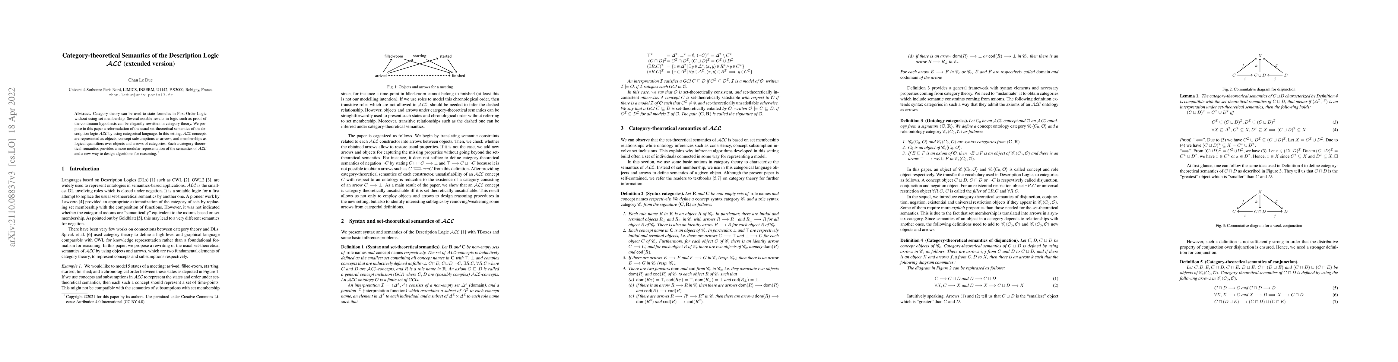 The paper introduces a category-theoretical semantics for the description logic ALC, providing a modular representation of its semantics and proving its compatibility with set-theoretical semantics.