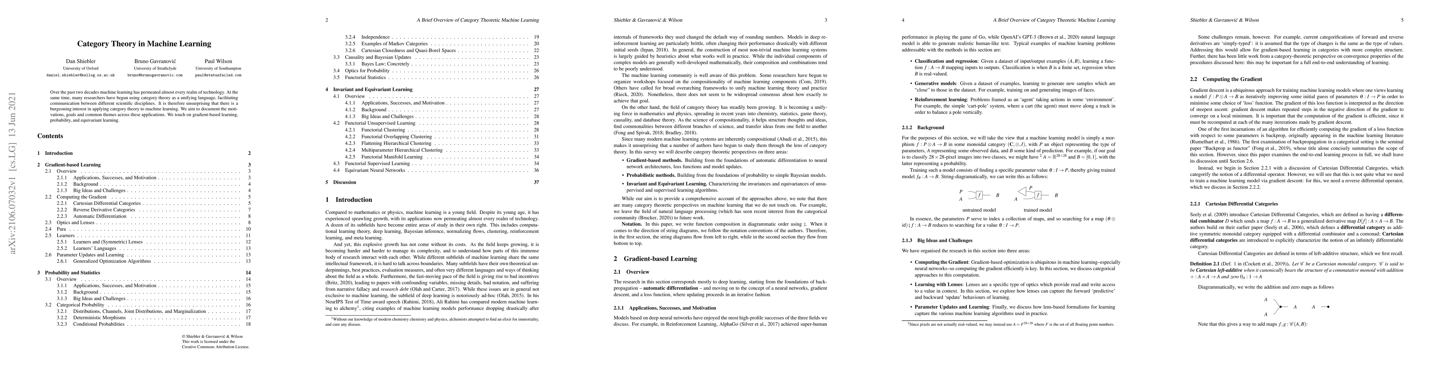 This paper explores the integration of category theory into machine learning, highlighting its role as a unifying language that bridges various scientific disciplines. It discusses applications in gradient-based learning, probability, and equivariant learning, aiming to document the motivations and common themes behind these efforts.