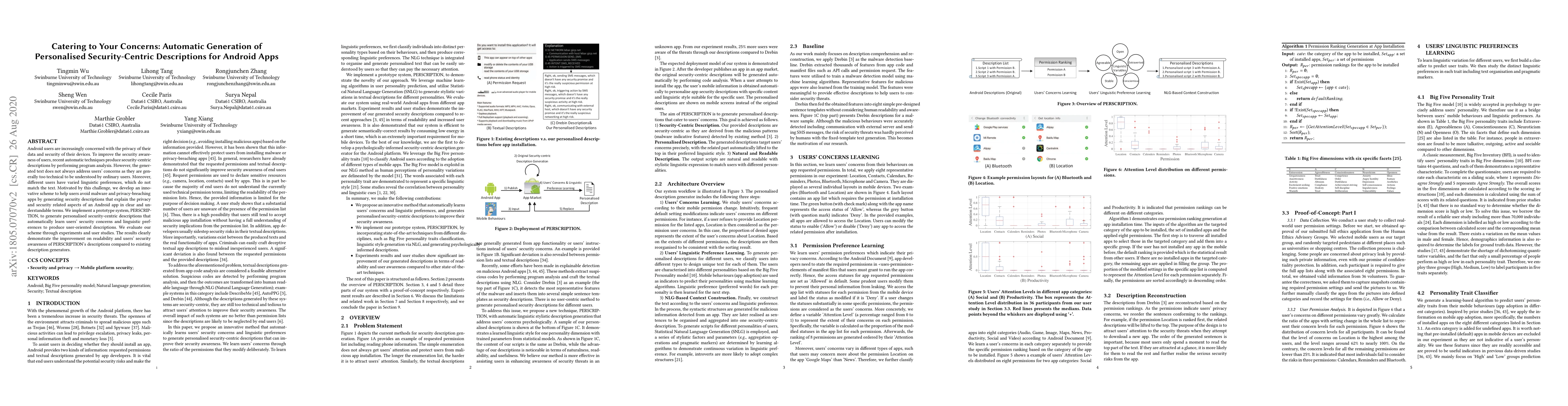 Android users are increasingly concerned with the privacy of their data and security of their devices. To improve the security awareness of users, recent automatic techniques produce security-centric descriptions by performing program analysis. However, the generated text does not always address users' concerns as they are generally too technical to be understood by ordinary users. Moreover, different users have varied linguistic preferences, which do not match the text. Motivated by this challenge, we develop an innovative scheme to help users avoid malware and privacy-breaching apps by generating security descriptions that explain the privacy and security related aspects of an Android app in clear and understandable terms. We implement a prototype system, PERSCRIPTION, to generate personalised security-centric descriptions that automatically learn users' security concerns and linguistic preferences to produce user-oriented descriptions. We evaluate our scheme through experiments and user studies. The results clearly demonstrate the improvement on readability and users' security awareness of PERSCRIPTION's descriptions compared to existing description generators.