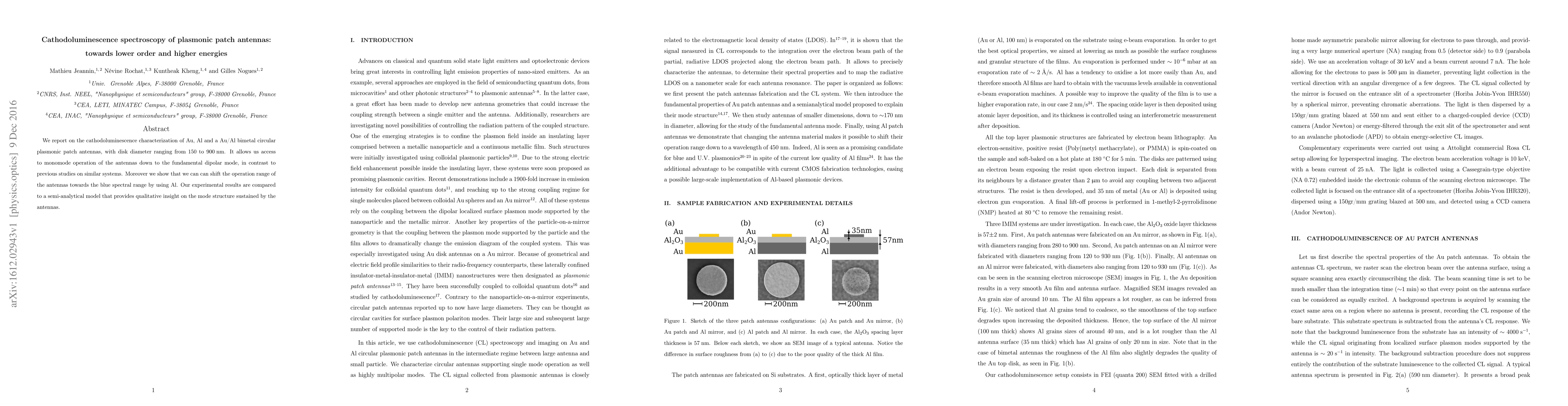 This paper investigates the cathodoluminescence of plasmonic patch antennas made from Au, Al, and a Au/Al bimetal, revealing their operation down to fundamental dipolar modes. The use of Al shifts the operational range towards higher energies in the blue spectral range, as demonstrated by comparison with a semi-analytical model.